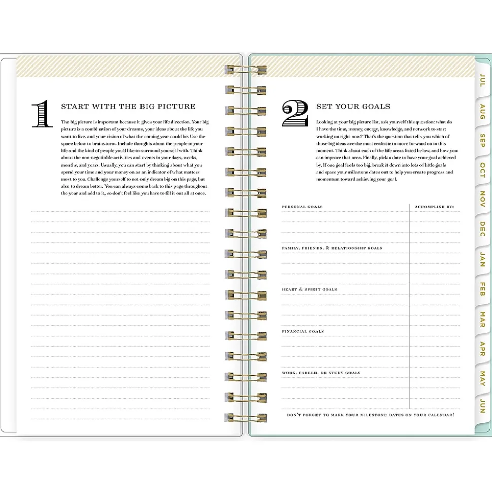 Plan on the go with a tiny planner that fits in your coat pocket. Smaller and lighter for everyday travel, the Blue Sky Day Designer Flower Mint pocket planner has lined weekly pages, tabbed monthly views, and notes pages. Also includes pages for your goals, contacts, and important dates.
