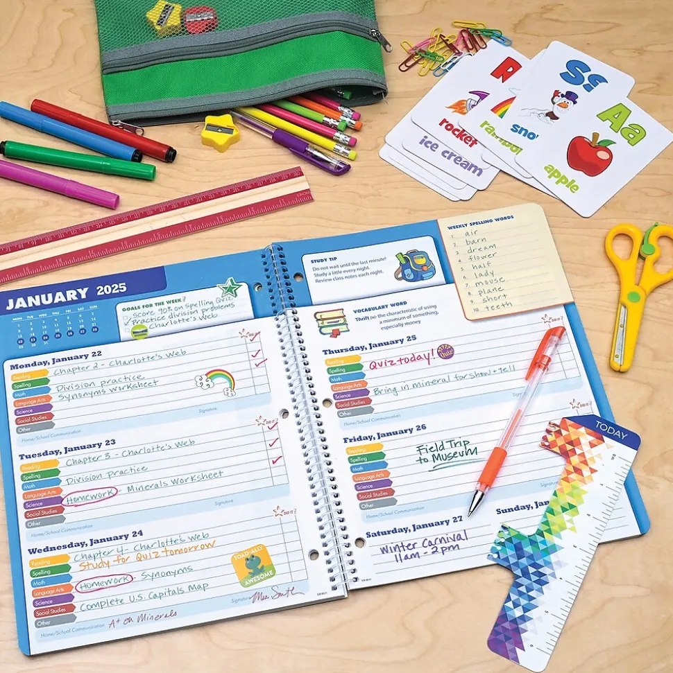 - 8.5″ x 11″ Student Agenda & Academic Planner for elementary school students. Planner runs from August 2024 through June 2025