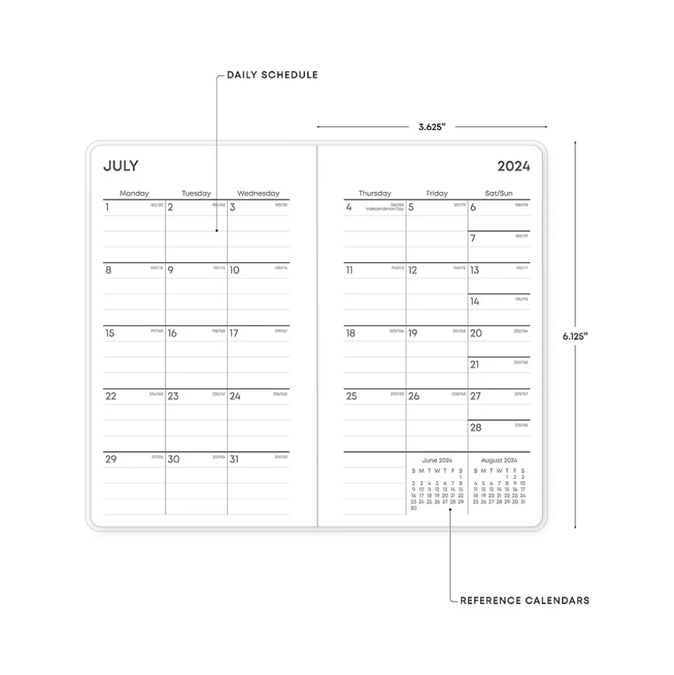 - Offers one month per two pages with reference calendars