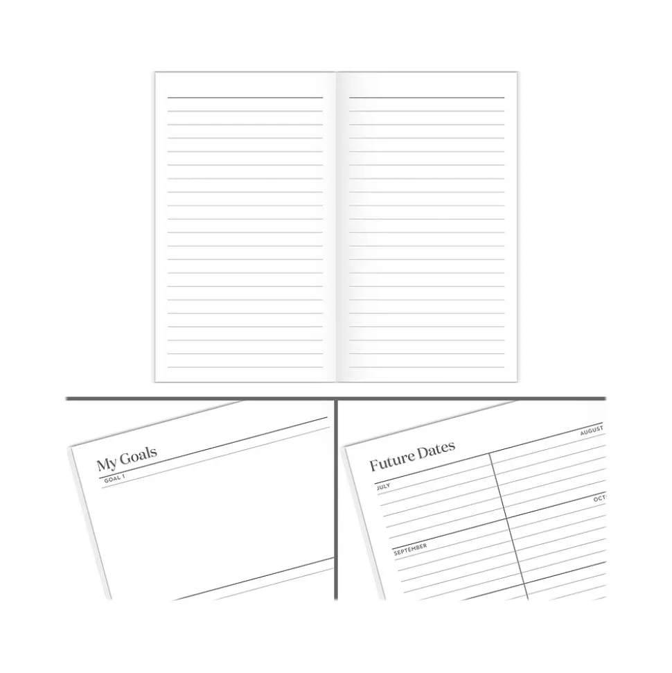 - Special pages include two pages for goals, 10 note-taking pages, future dates, and a holiday list