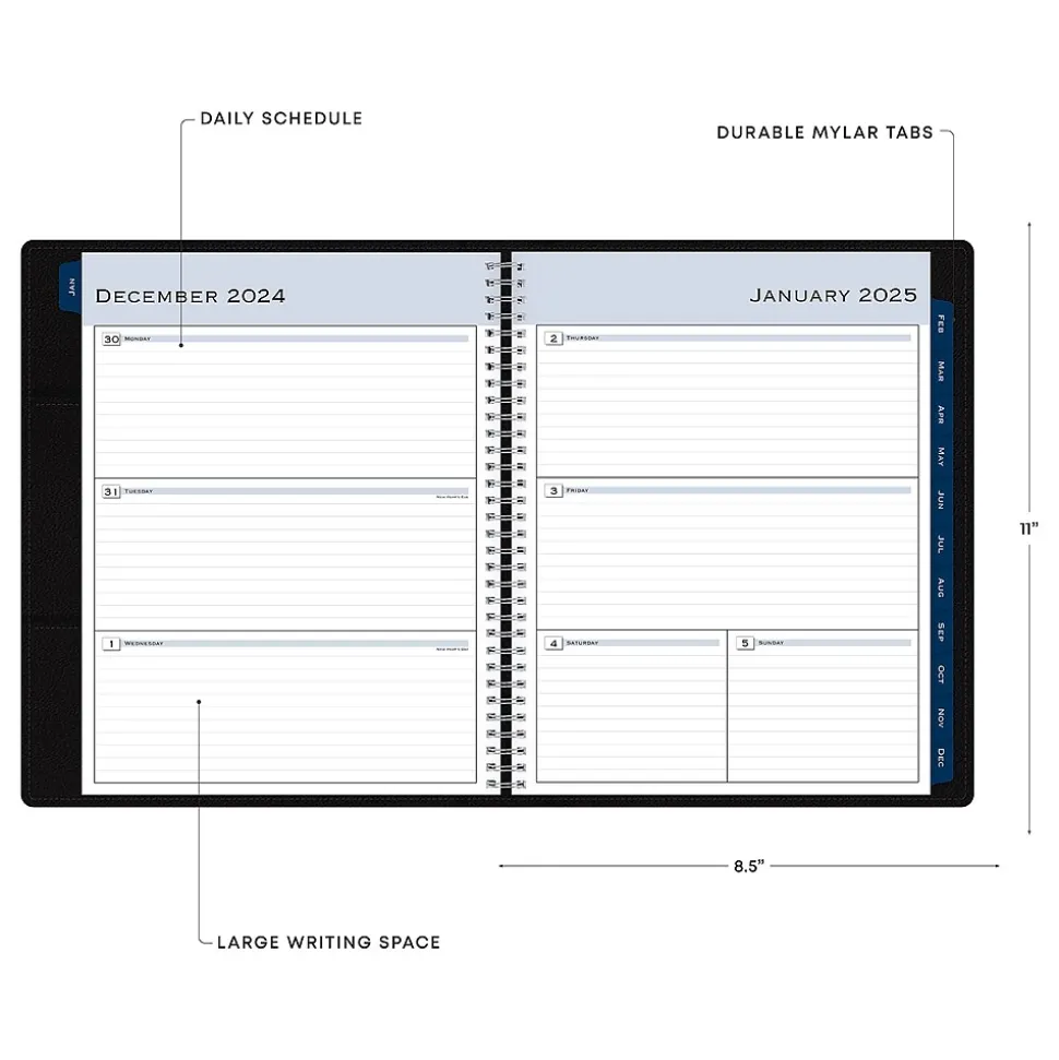 Plan to impress with a refillable planner portfolio. Designed to secure important papers, this professional agenda from Blue Sky has a pen loop and storage pockets for documents and business cards. Includes a removable 2025 weekly and monthly planner.