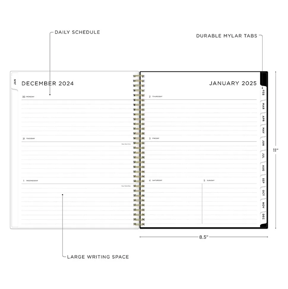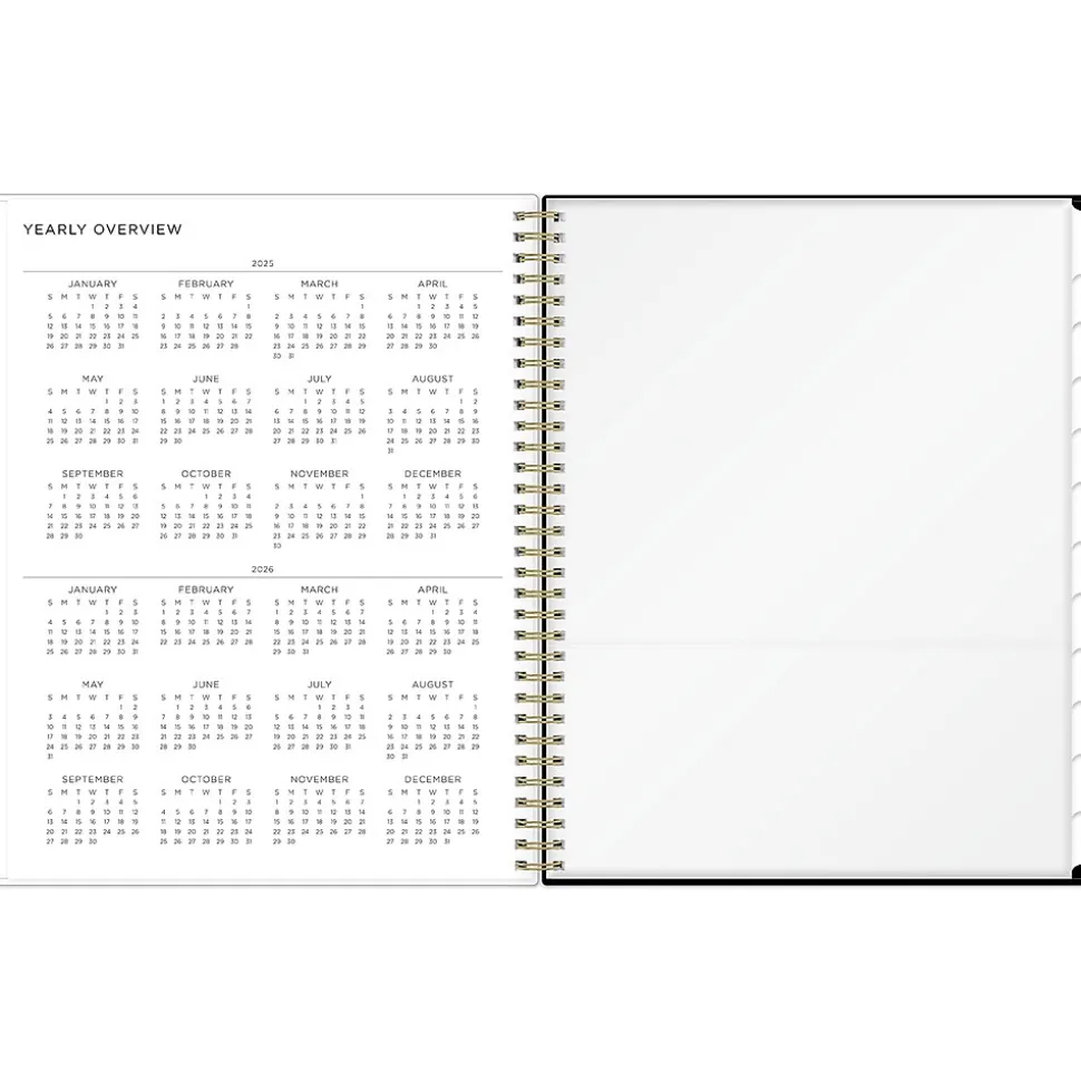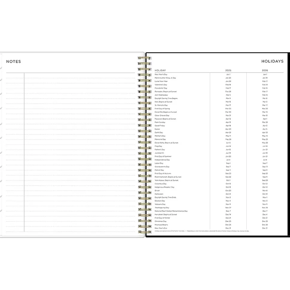 - Features two-page weekly and monthly spreads, with space for notes and quick reference calendars
