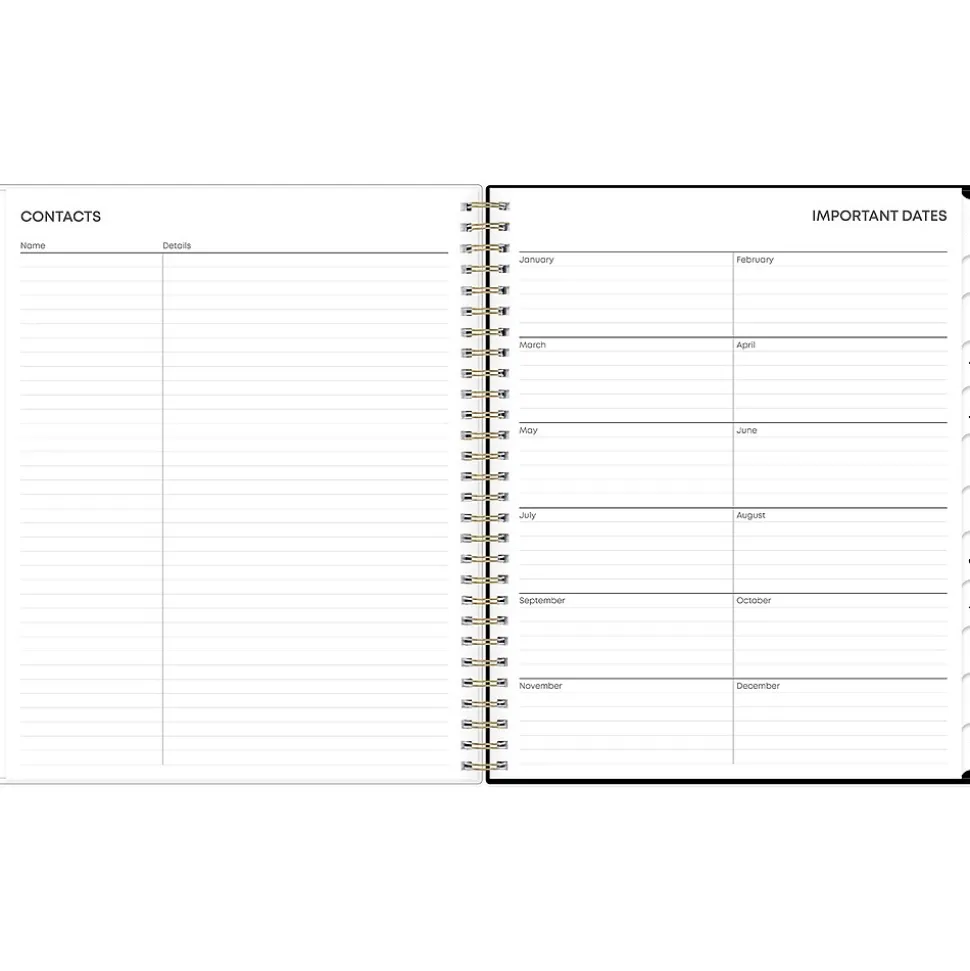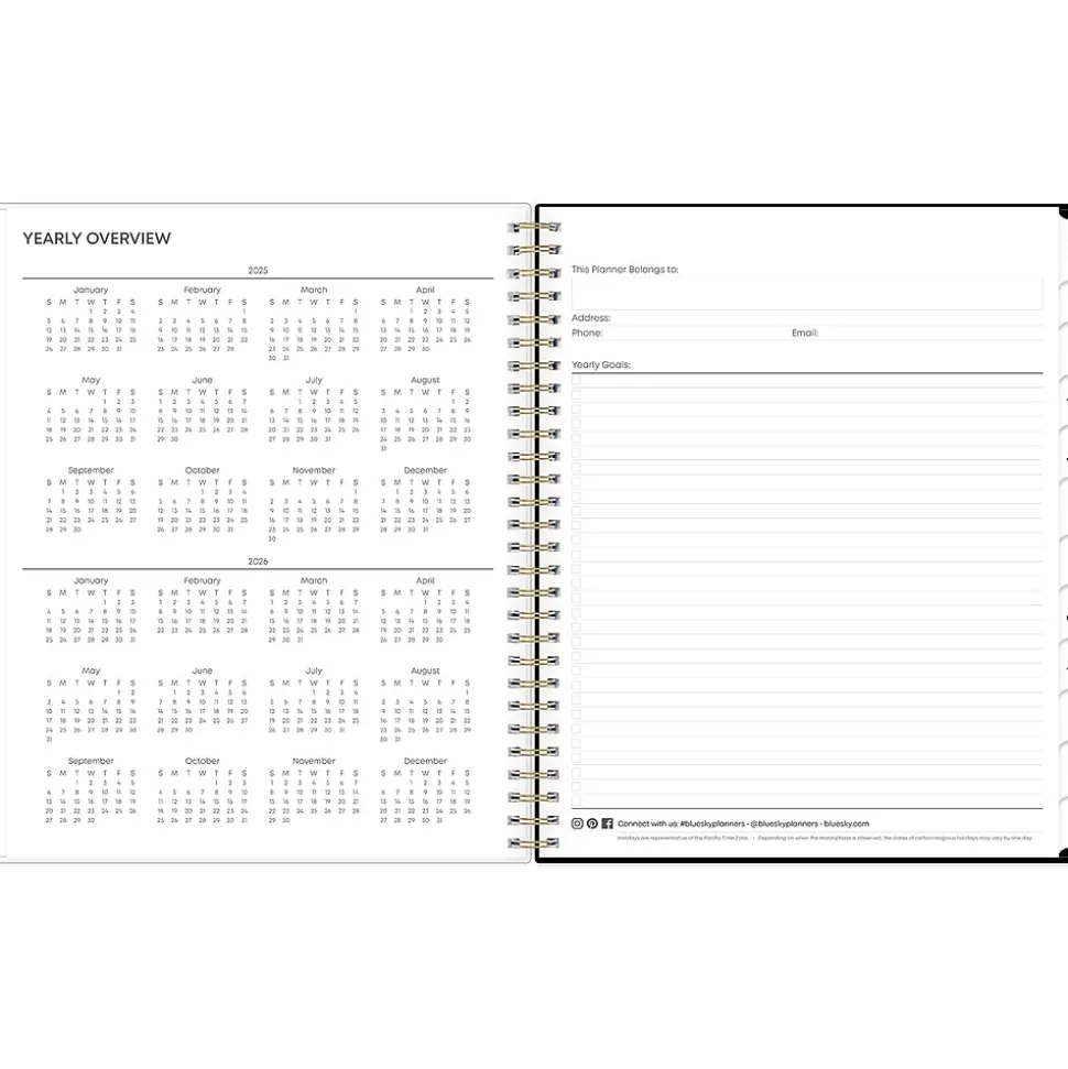 A simple planner with monthly calendars and a clear pocket cover. Track events with the Baccara Dark 2025 monthly planner from Blue Sky, featuring 12 tabbed monthly views and plenty of room for notes.