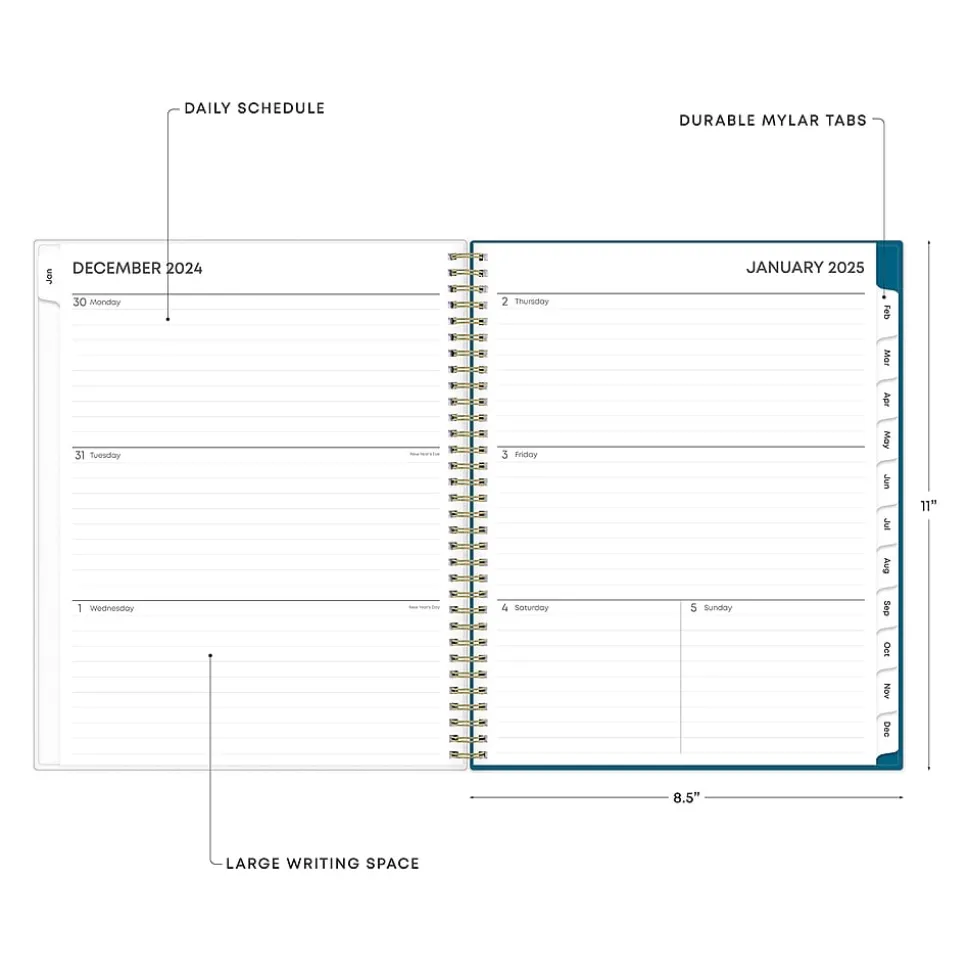 A simple planner for busy schedules. Organize tasks and time with the Bakah Blue weekly and monthly 2025 planner from Blue Sky that includes a storage pocket. Use weekly layouts, tabbed monthly views, and notes pages to effectively manage your schedule and achieve your goals.