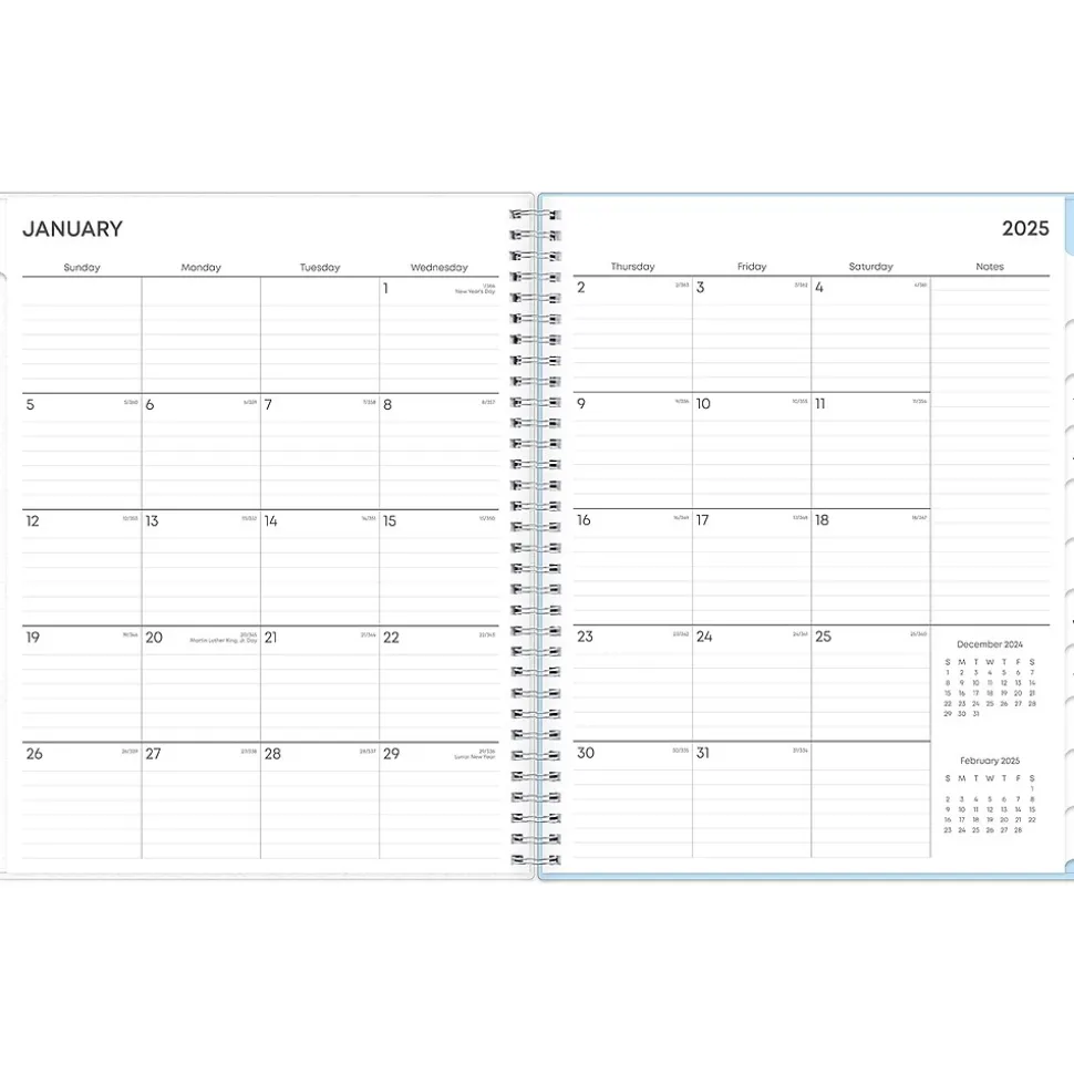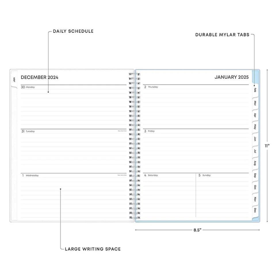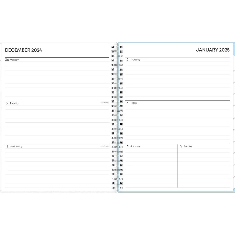 Organize tasks and time with the 2025 Blue Sky Blue Block planner that includes a storage pocket. Use lined weekly layouts, tabbed monthly views, and notes pages to manage your schedule and achieve your goals.