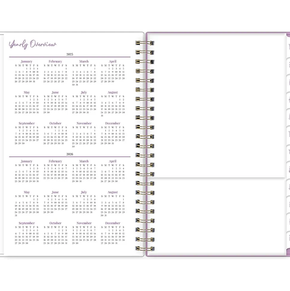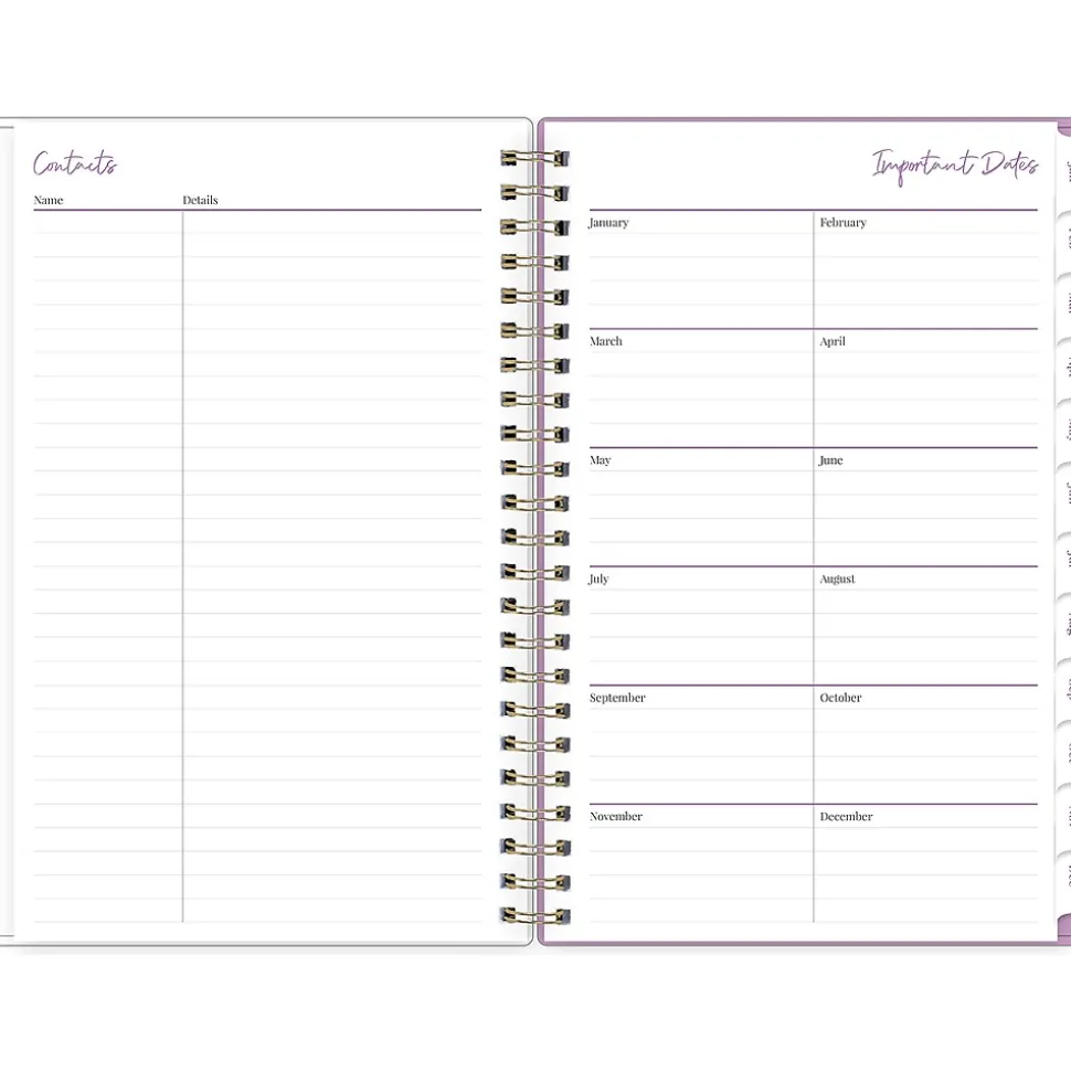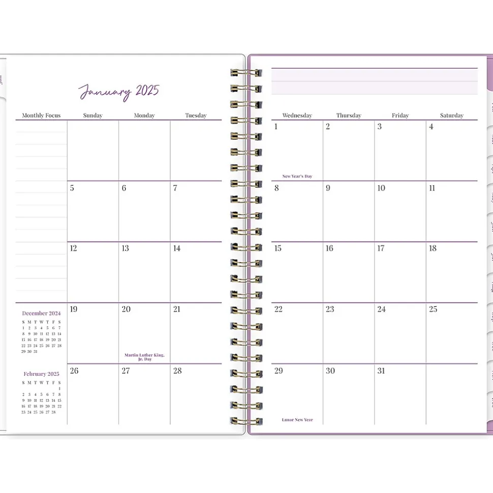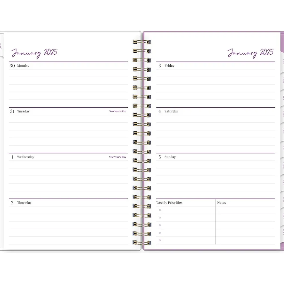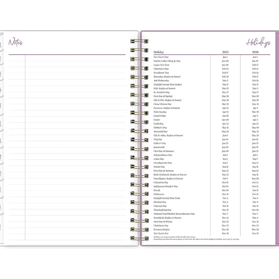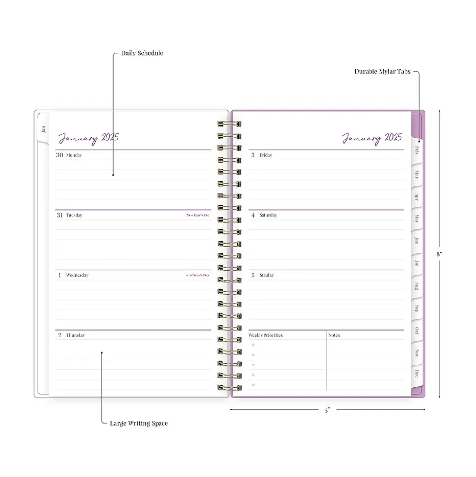 Organize tasks and time with the 2025 Ella Bloom weekly and monthly planner from Britt Mills for Blue Sky. It features a clear storage pocket to keep everything together and includes weekly layouts, tabbed monthly views, and notes pages to help you manage your schedule and achieve your goals.