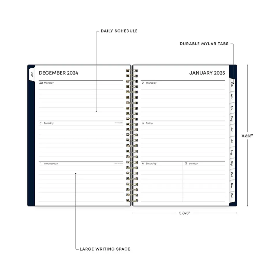 The best of both worlds: this planner features a built-in notebook. The 2025 Blue Sky Cheeyna all-in-one planner comes with 30 ruled pages for notes, weekly pages, and tabbed monthly views. Perfect for people who love to write, this planner is a notebook, organizer, and planner all rolled into one. Track dates, goals, and feedback in one convenient place.