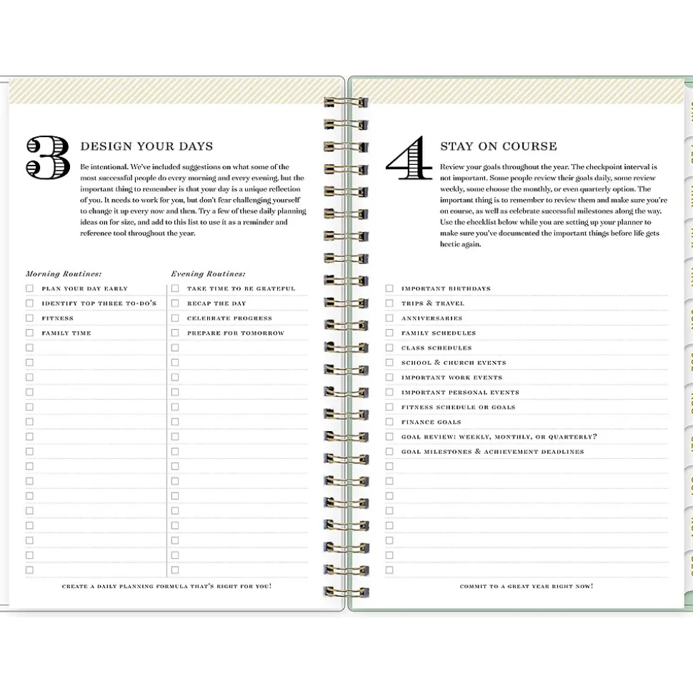 - Features two-page weekly and monthly spreads, with space for notes and quick reference calendars