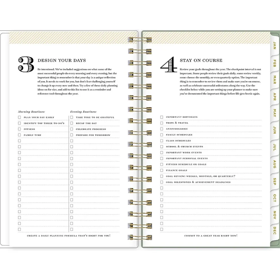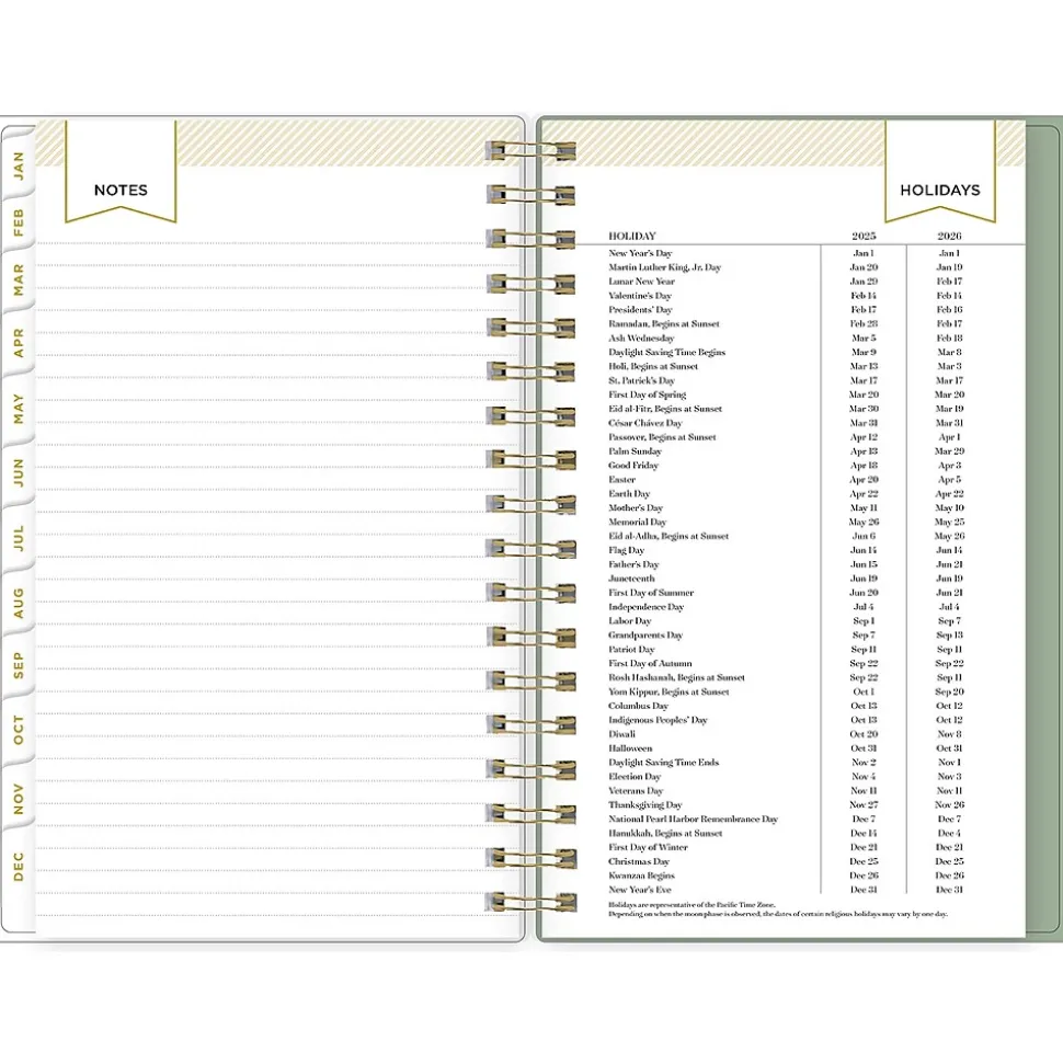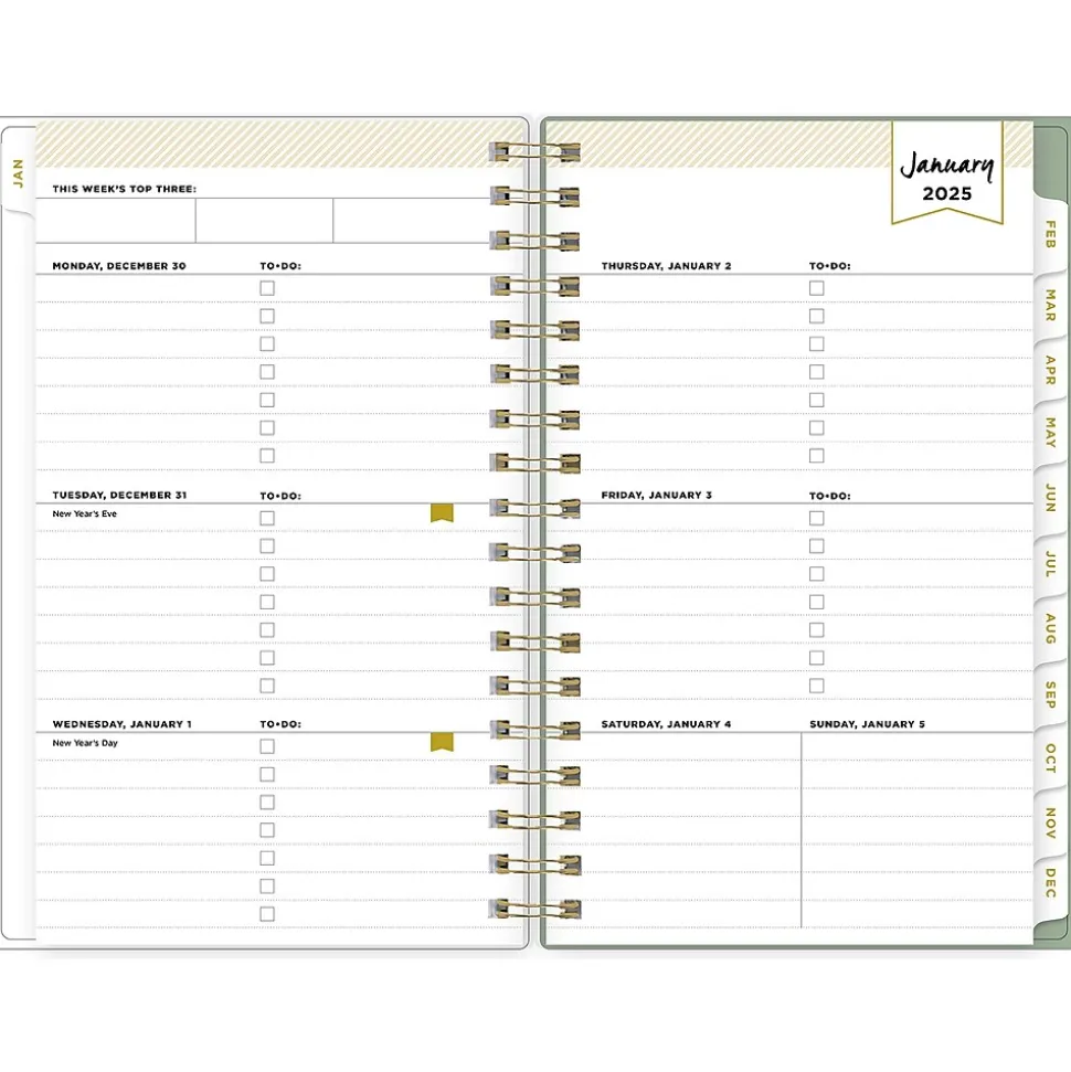 - Features two-page weekly and monthly spreads, with space for notes and quick reference calendars