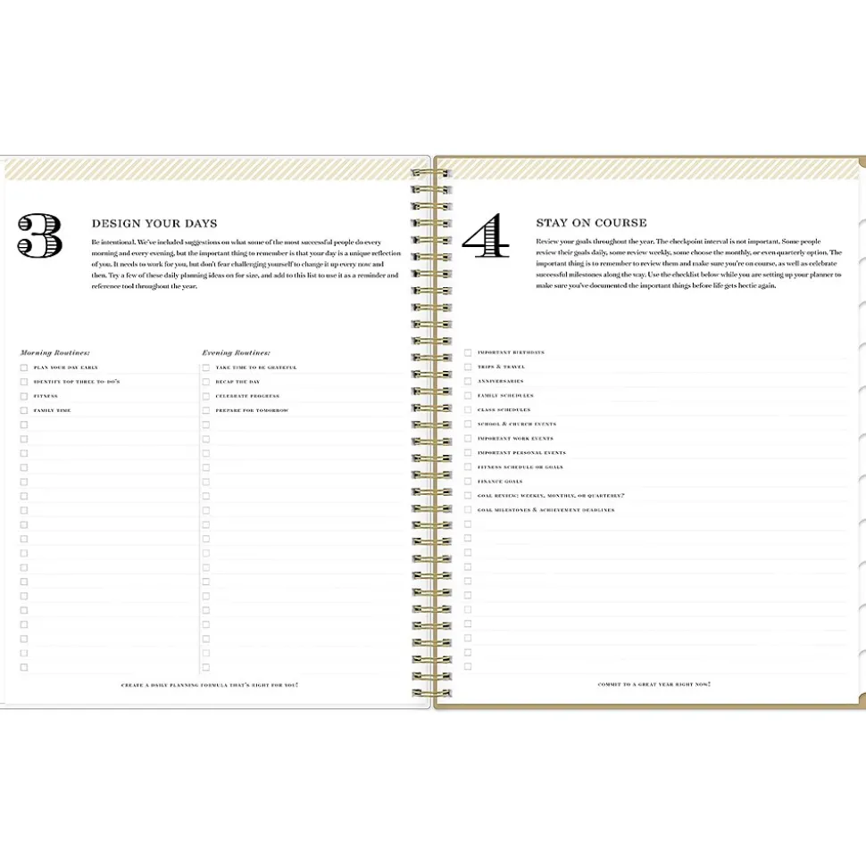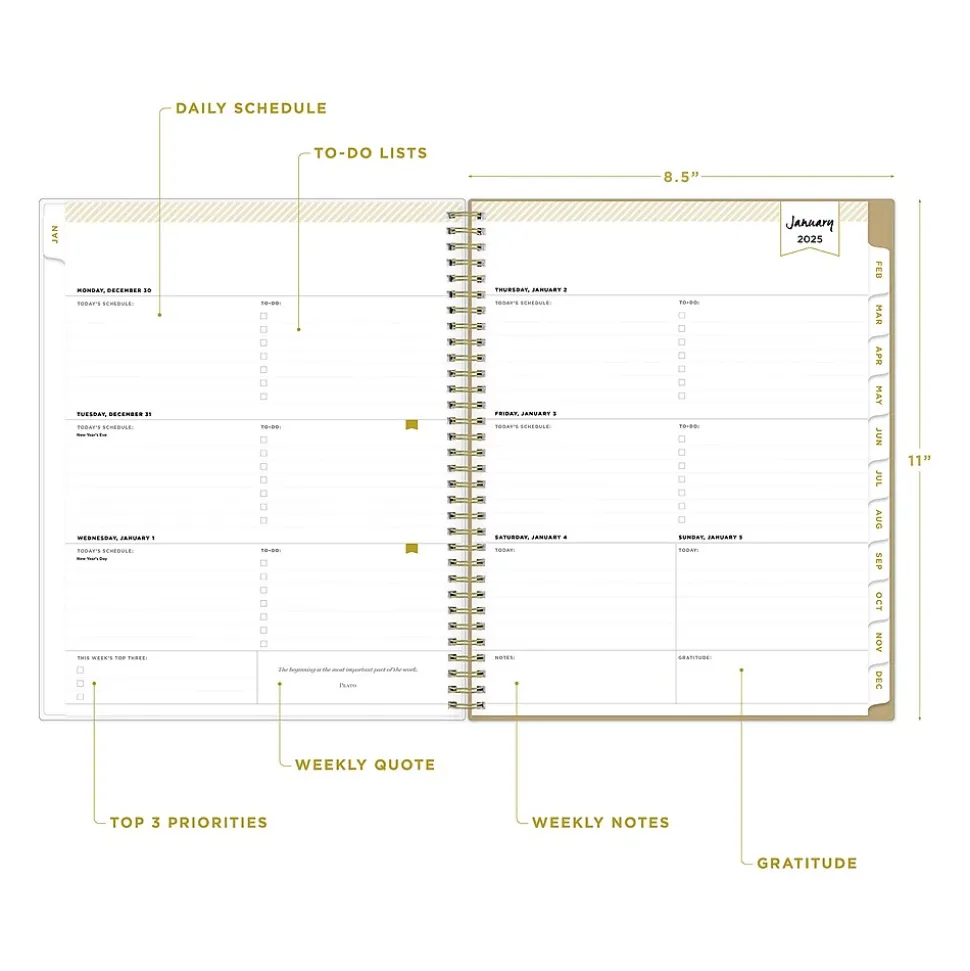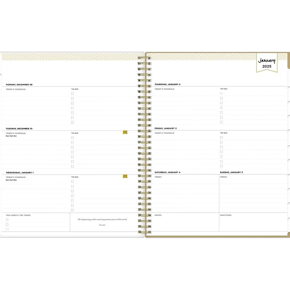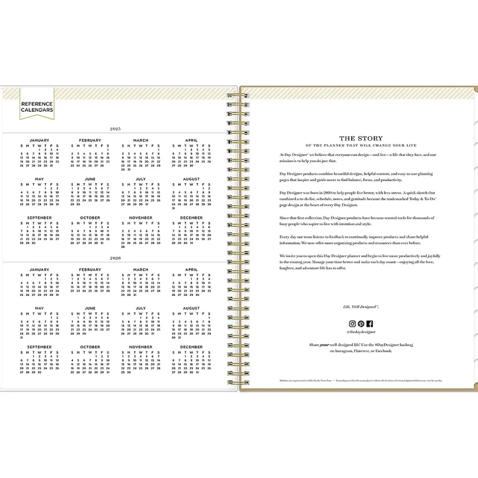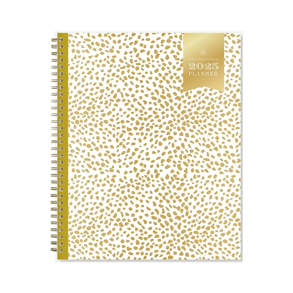 Day Designer for Blue Sky offers an elegant place to plan your year. With a customizable clear pocket cover, goal-setting worksheets, and outstanding weekly layouts, the 2025 Gold Spotty planner from Day Designer for Blue Sky helps you prioritize tasks and stay organized. It includes gold-tone foil stickers and a storage pocket for a well-designed year.