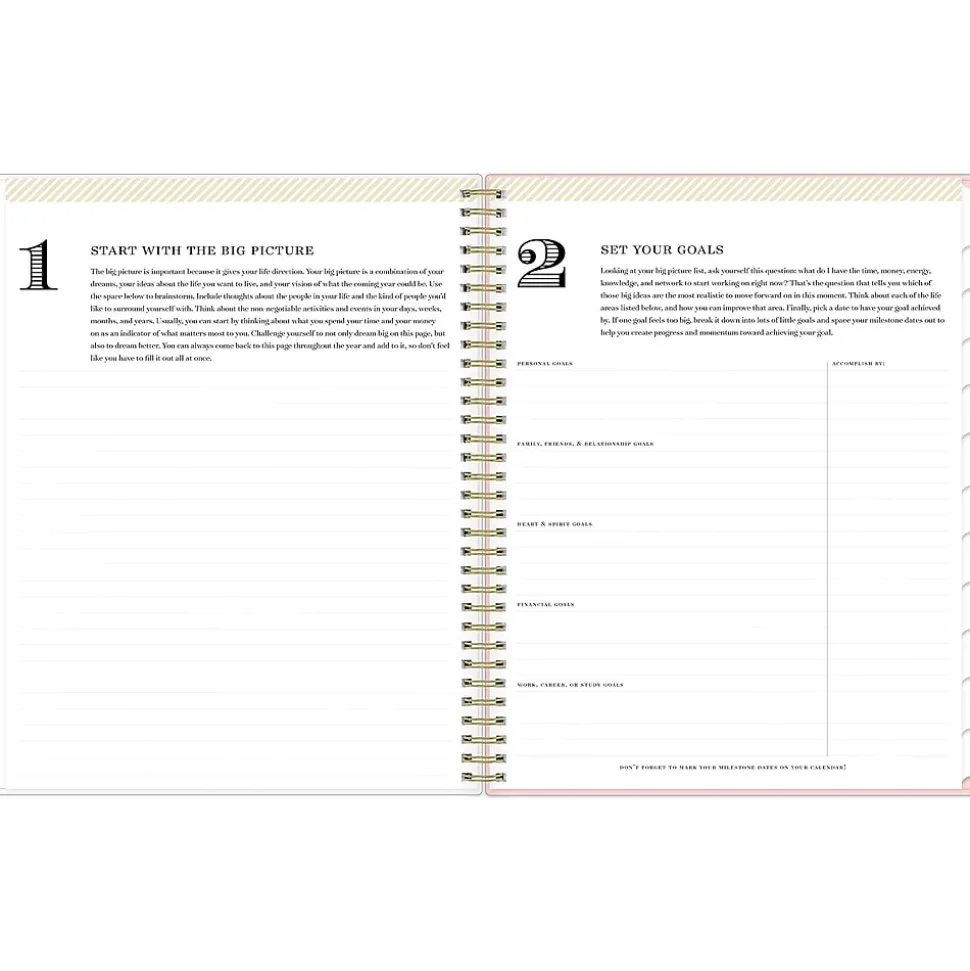 Organize your life with a planner you can customize. This 2025 Blue Sky Day Designer Roses Blush planner has a clear pocket cover for displaying photos, plus ruled weekly layouts, tabbed monthly views, and notes pages to help you manage your schedule. Use the storage pocket, gold-tone foil stickers, and goal-setting worksheets to make the most of this year.