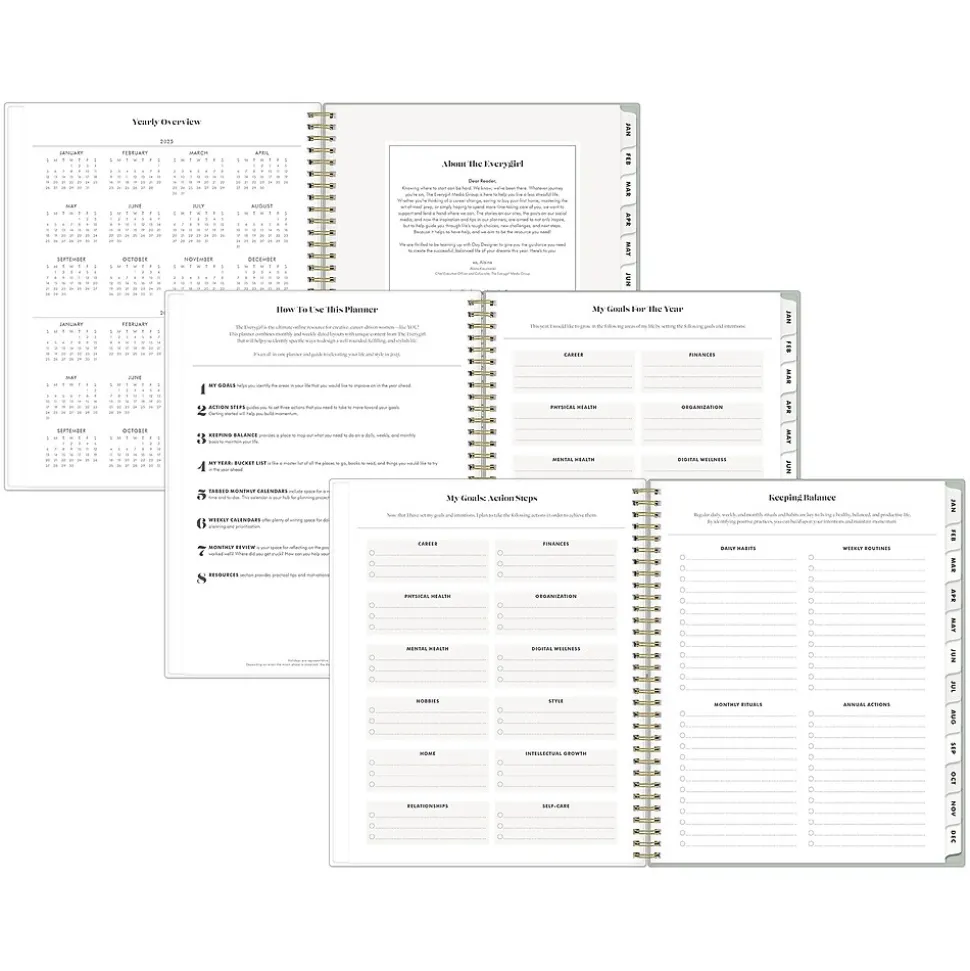 - Storage pocket, stickers, The Everygirl content, notes pages, and worksheets