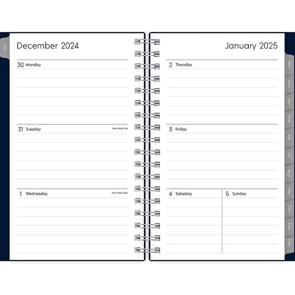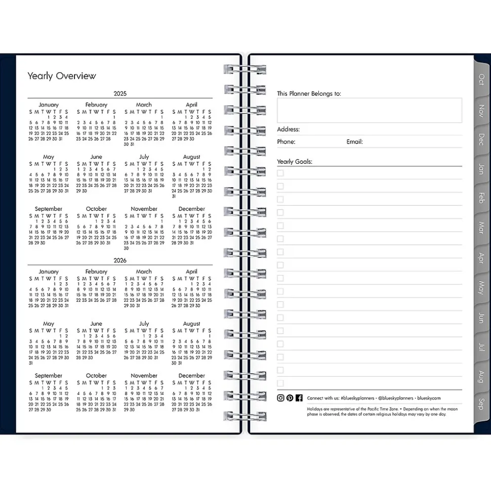 The 2025 Blue Sky Enterprise pocket planner has ruled weekly pages, tabbed monthly views, and notes pages. Use pages for your notes, goals, contacts, and important dates to stay organized.