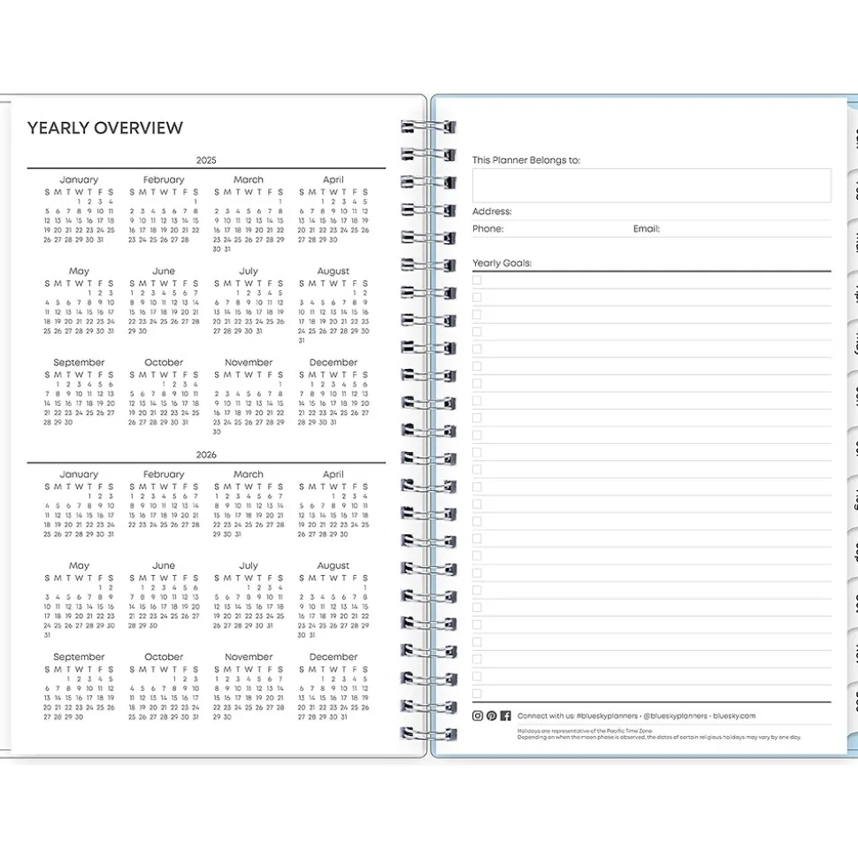 Organize tasks and time with a 2025 weekly and monthly planner from Blue Sky. The Larah Blue planner offers lined weekly layouts, tabbed monthly views, and notes pages to help you manage your schedule and achieve your goals.