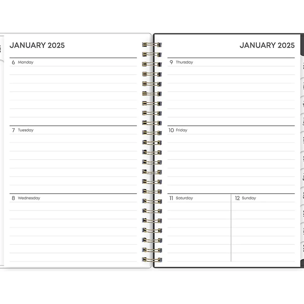 A simple planner for busy schedules. Organize tasks and time with the 2025 weekly and monthly Makeera planner from Blue Sky. Use weekly layouts, tabbed monthly views, and notes pages to effectively manage your schedule and achieve your goals.
