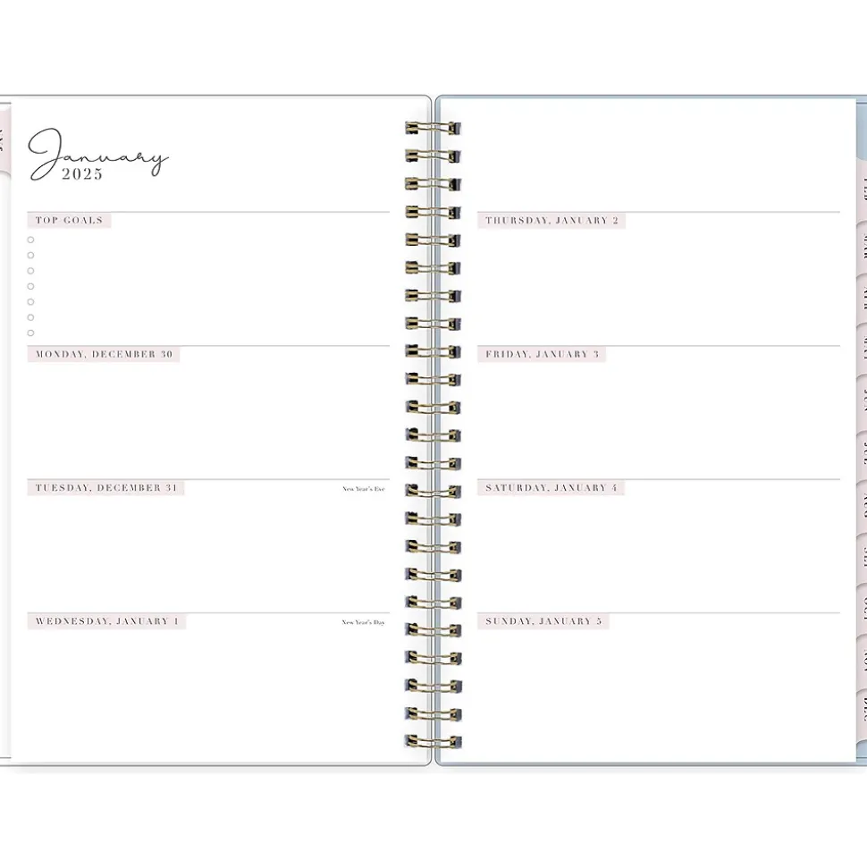 Organize your tasks with the 2025 Parcella planner from Rachel Parcell for Blue Sky. It includes stickers and a storage pocket and features unruled weekly layouts, tabbed monthly views, and notes pages to help you manage your schedule.