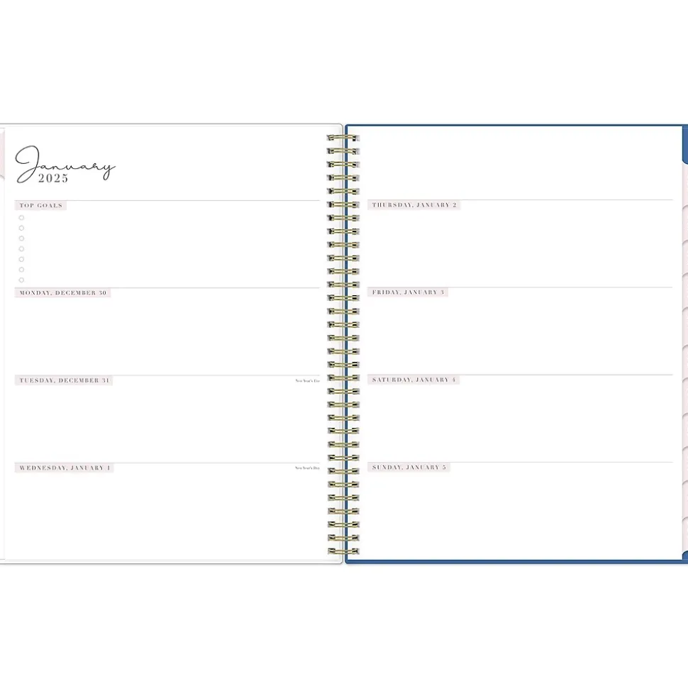 Organize your tasks with the 2025 Tressa planner from Rachel Parcell for Blue Sky. It includes stickers and a storage pocket and features unruled weekly layouts, tabbed monthly views, and notes pages to help you manage your schedule.