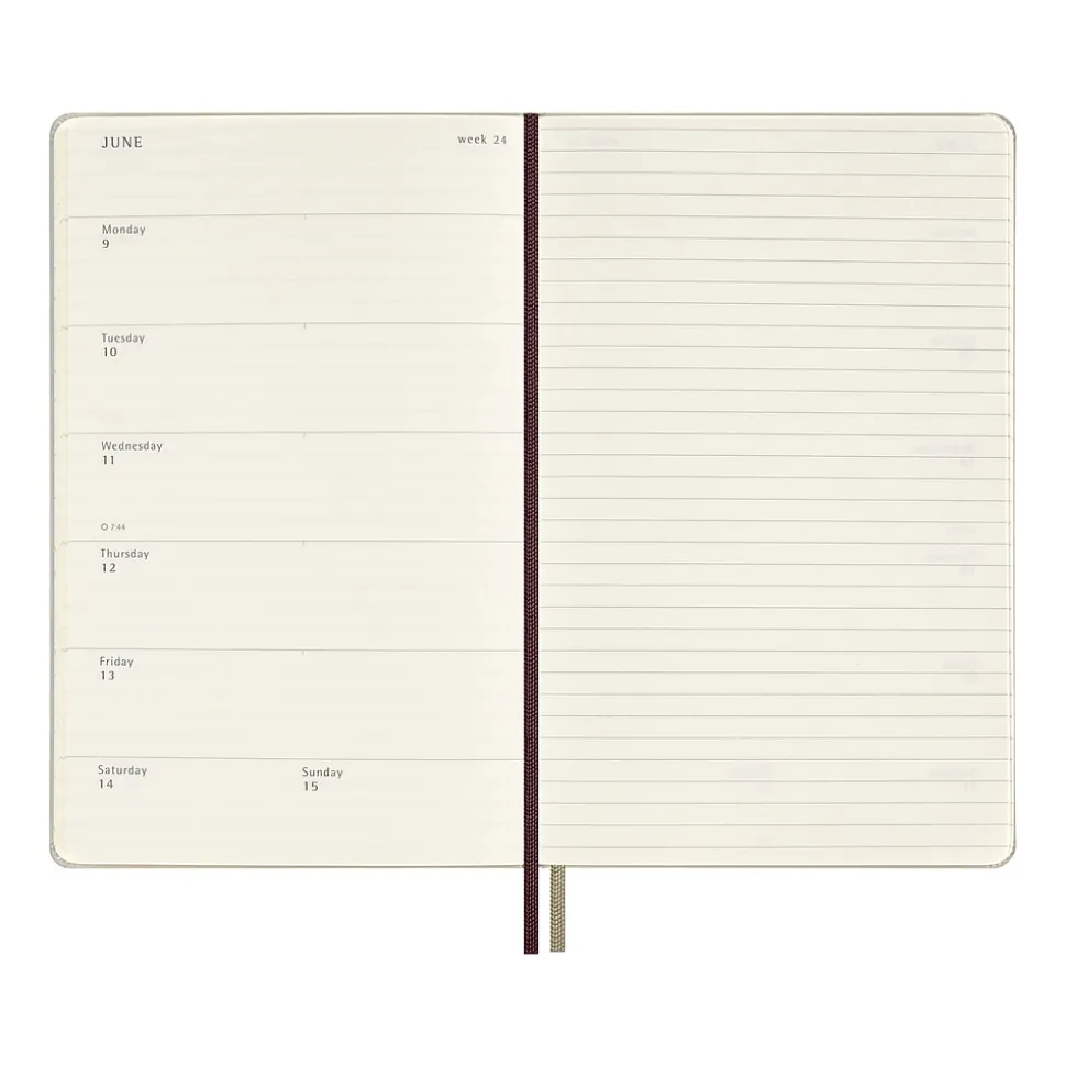 - Features rounded corners, elastic closure, and two matching ribbon bookmarks