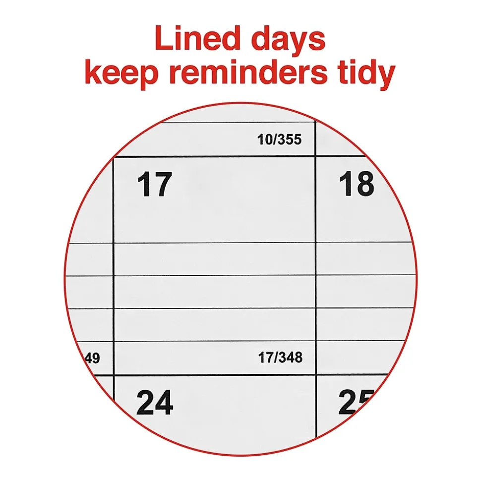 Equip your workspace with this 12-month wall calendar for 2025. The twin-wire double-loop binding allows for quick access to previous months, while the grid lines let you write down important milestones. Plan ahead easily with the monthly layout. This Staples 8 x 11-inch January 2025 to December 2025 wall calendar marks the holidays for quick reference.