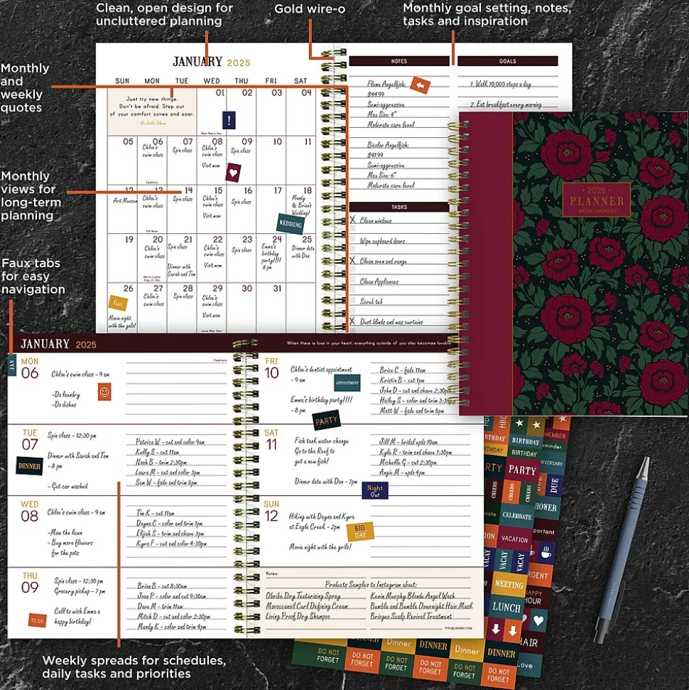 Planning your year is a snap with this medium sized 12-month 2025 planner!