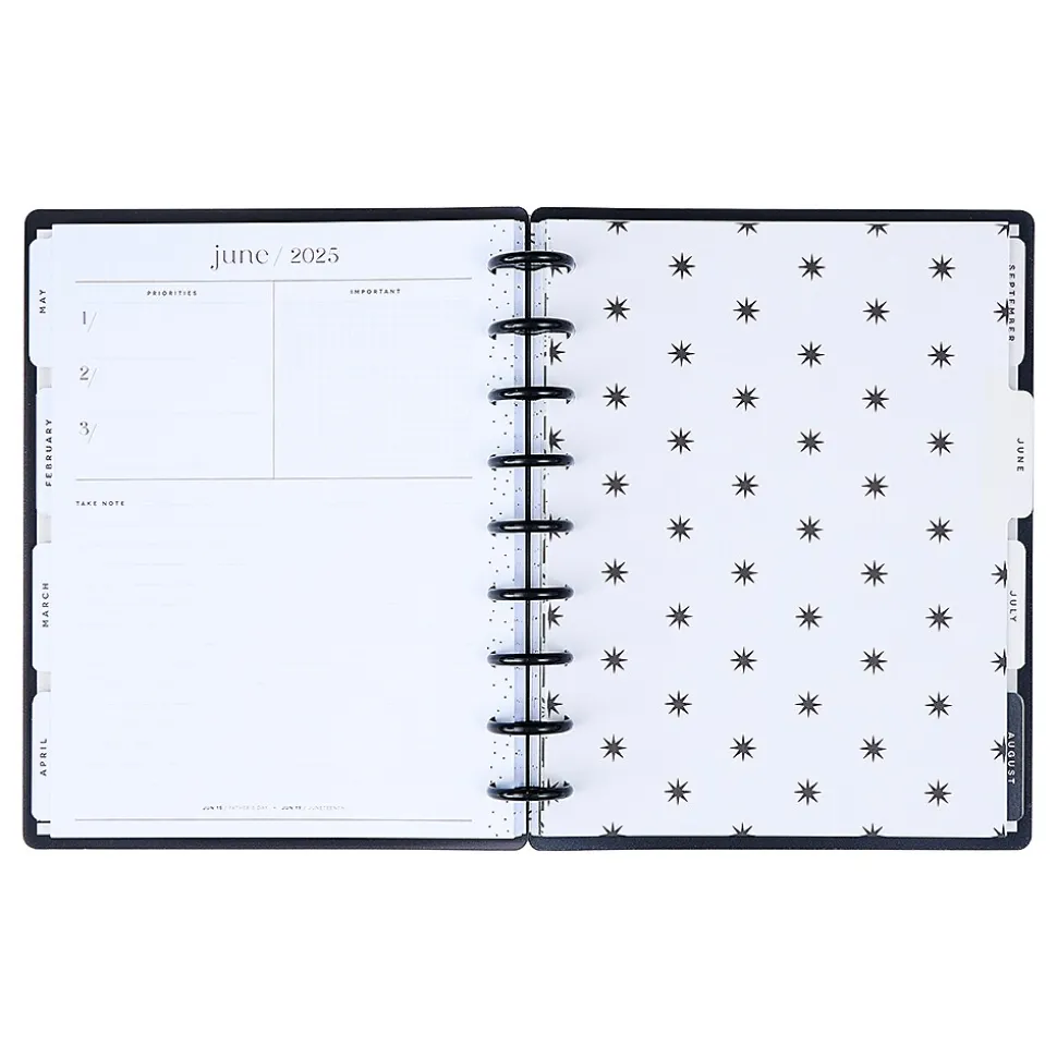 Make time for what you love with this Ink & Ivy classic-size planner from Happy Planner. This design features 12 dividers with a black-and-white color scheme and minimalistic florals. The dashboard layout runs from January 2025 to December 2025. Be you and plan ahead with 12 months of weekly spreads. Add complementary accessories and stickers from Happy Planner, and create your own unique planning system.