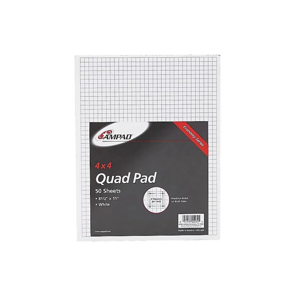 Be prepared for graphing and other tasks with this graph pad. Featuring a quad-ruled design, this pad makes drawing charts and graphs simple, and it has 50 double-sided sheets, providing plenty of space for extensive projects. This Ampad white graph pad is made with 15-pound material, offering a sturdy look and feel, while the glue top lets you remove sheets cleanly.