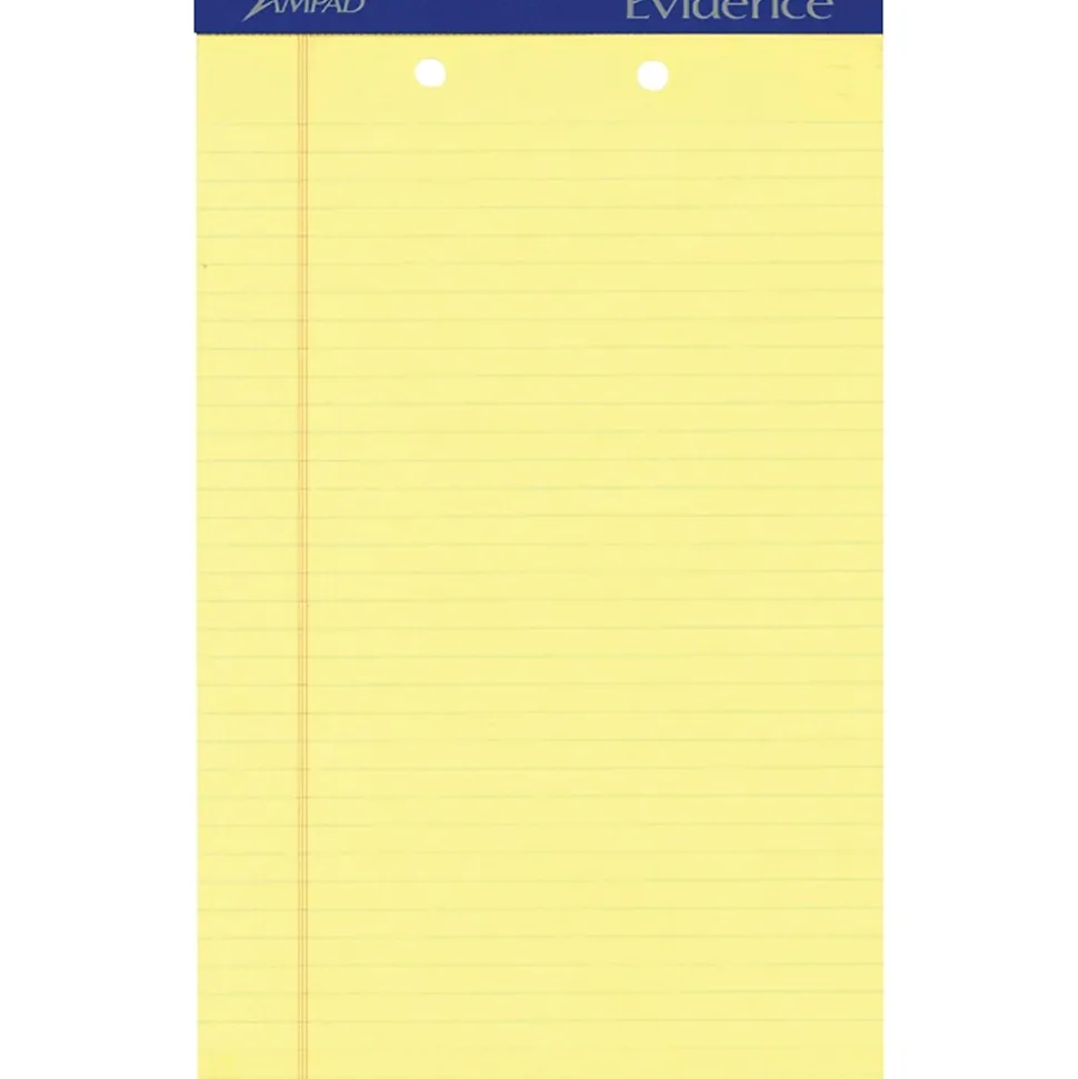 Keep track of important concepts or write out lists with these Ampad wide-rule writing pads. Canary yellow color offers a bright background for your writing, while the perforated edges allow for rip-free sheet removal. Each pad features a sturdy backing, providing a supportive writing surface. With their compact size, these Ampad college-rule writing pads fit neatly in a briefcase or bag.
