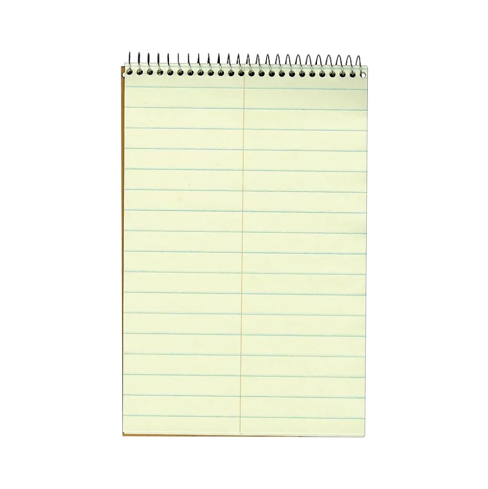 Organize lists and other information with this top-bound steno notebook. Featuring perforated sheets, this notebook lets pages easily detach while preventing damage to other papers, and the no-snag coil reduces catching on clothing or pages. This Ampad 80-sheet green-tint steno notebook is Pitman-ruled, providing plenty of space for writing lists, records, and other notes.