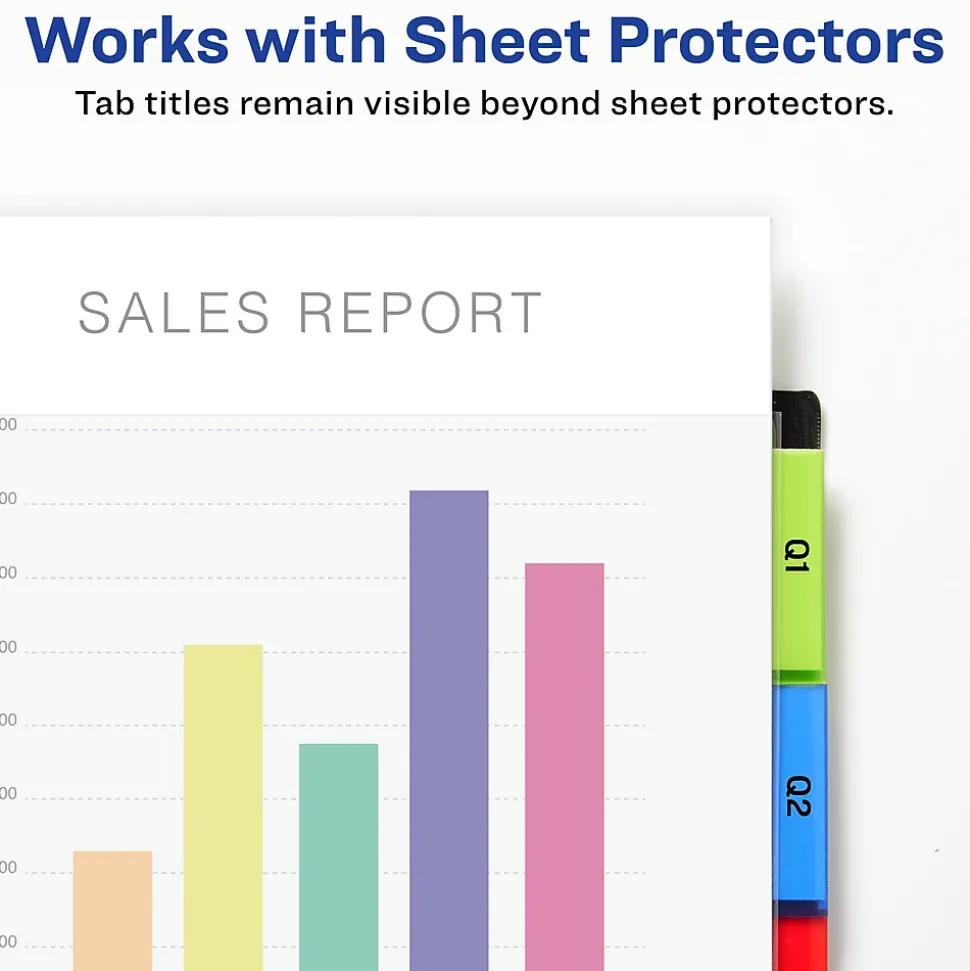 - Tab titles remain visible with tabs that extend beyond sheet protectors
