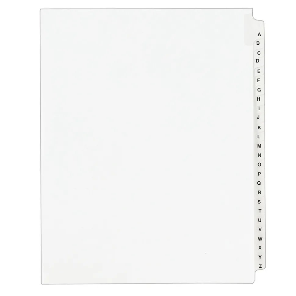 You have the right to organized and professional-looking files. This Standard Collated Legal Divider Set features Tabs A-Z so it’s perfect for index briefs, legal exhibits, mortgage documentation files and more. White paper stock with clear, Rip Proof(TM) reinforced tabs are preprinted on both sides using Helvetica bold type for ease of use, and the unpunched binding edge gives you the freedom to fit practically any binding system. Here’s evidence these dividers will do your files justice.