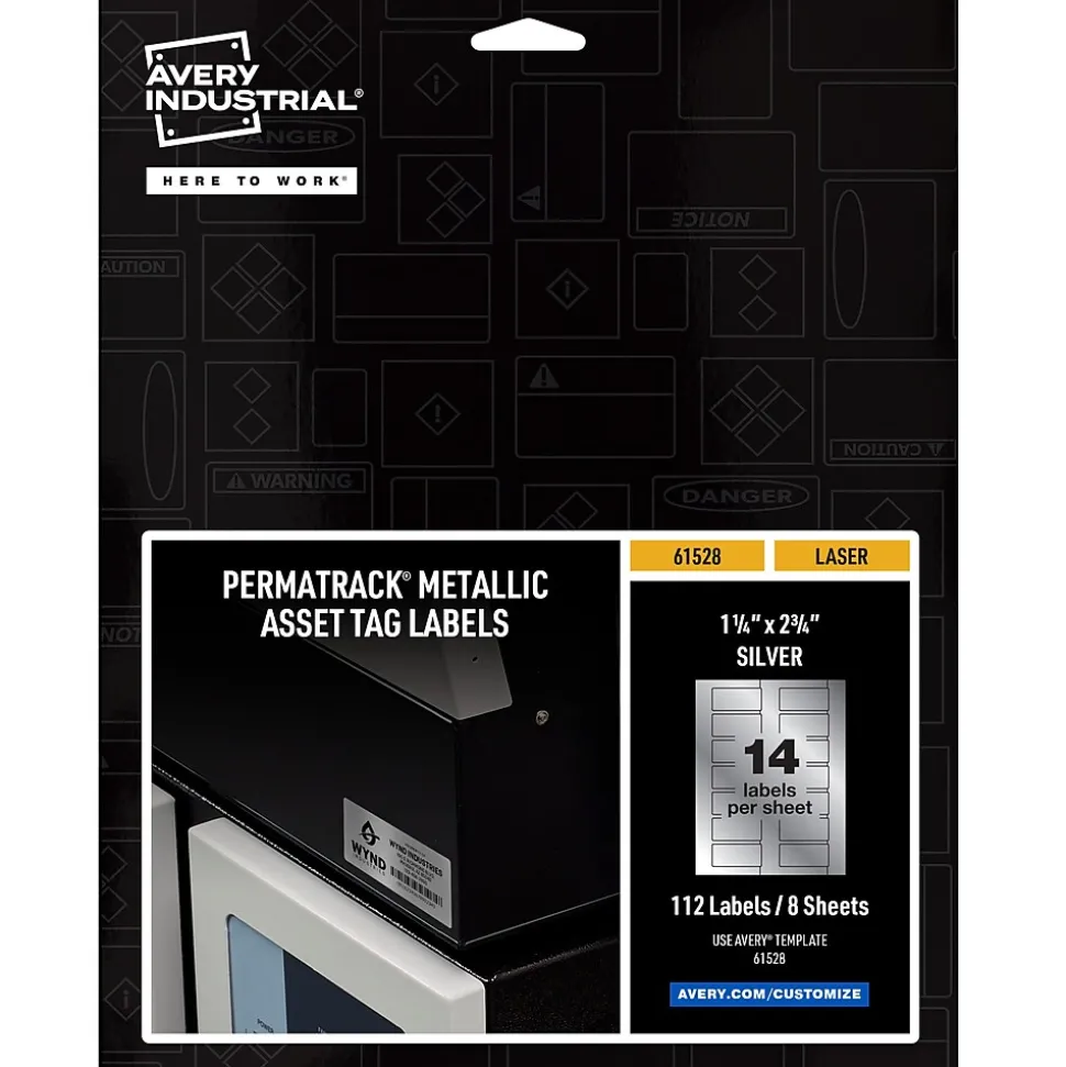 Asset tagging is an effective way to record and monitor your company’s valuable assets such as electronics, equipment, tools, furniture and containers. Avery(R) PermaTrack(R) Metallic Asset Tag Labels make it easy to create your own asset tags, barcode labels, equipment tags, property tags and nameplates on demand, right from your laser printer. Chemical resistant, waterproof and abrasion resistant, these metallic asset tags print smoothly without skewing, jamming, or static buildup that can cause shock. Use the free Avery(R) Design & Print software with barcode generator to add text, graphics, serialized numbers or barcodes in just a few steps. Then print as many asset tags as you need, when you need them—avoiding high minimum order quantities and long leads times from custom printing services. Avery(R) PermaTrack(R) Metallic Asset Tags are available in a variety of sizes, and feature a strong adhesive to enable reliable identification and tracking for the life span of your asset.