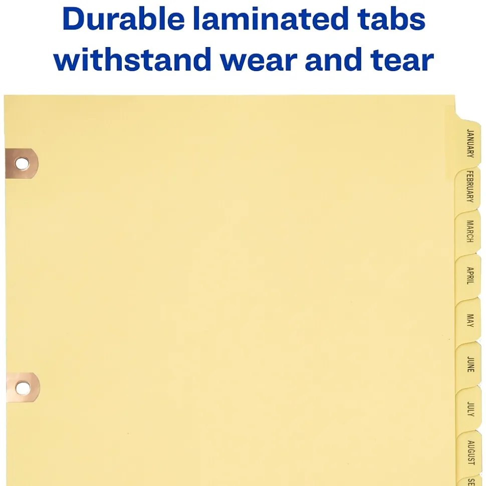 More efficient organization for alphabetical sorting. The process becomes simple with handy preprinted tabs to help you get started organizing your paperwork instantly. Prepunched holes in each divider are reinforced with durable copper, so you can turn pages secure in the knowledge that your dividers won’t tear easily from the binder rings. Easy-to-read black lettering helps you find the right section at a glance. Tab Style: 25-Tab; Tab Color(s): Buff; Index Divider Size: 11 x 8 1/2; Form Quantity: 1.