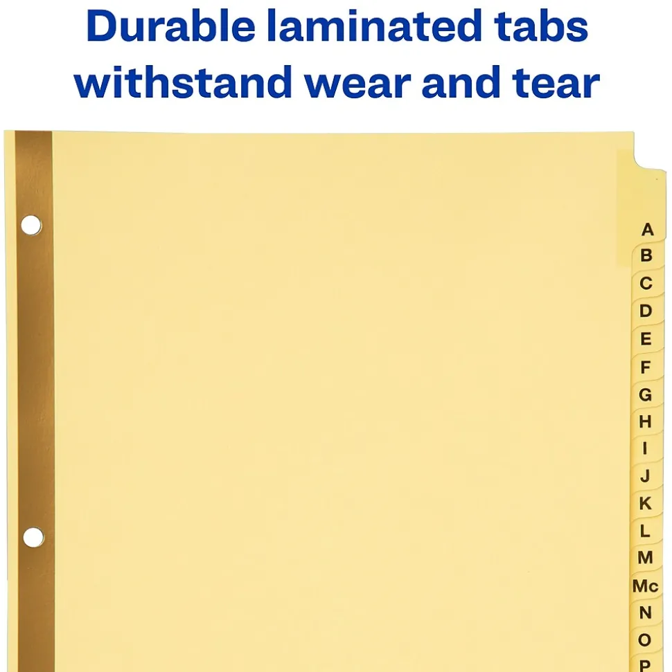Apply a solution as classic and simple as A-B-C with these Preprinted Dividers. Preprinted tabs run the length of the alphabet, from A to Z, to help you organize your documents efficiently. Simple black lettering on a neutral background is easy to read so you can quickly find the section you need. A tear-resistant strip reinforces the prepunched holes for added durability, so the dividers stay securely anchored in your three-ring notebook. With the help of these dividers, your paperwork is letter perfect in its organization.