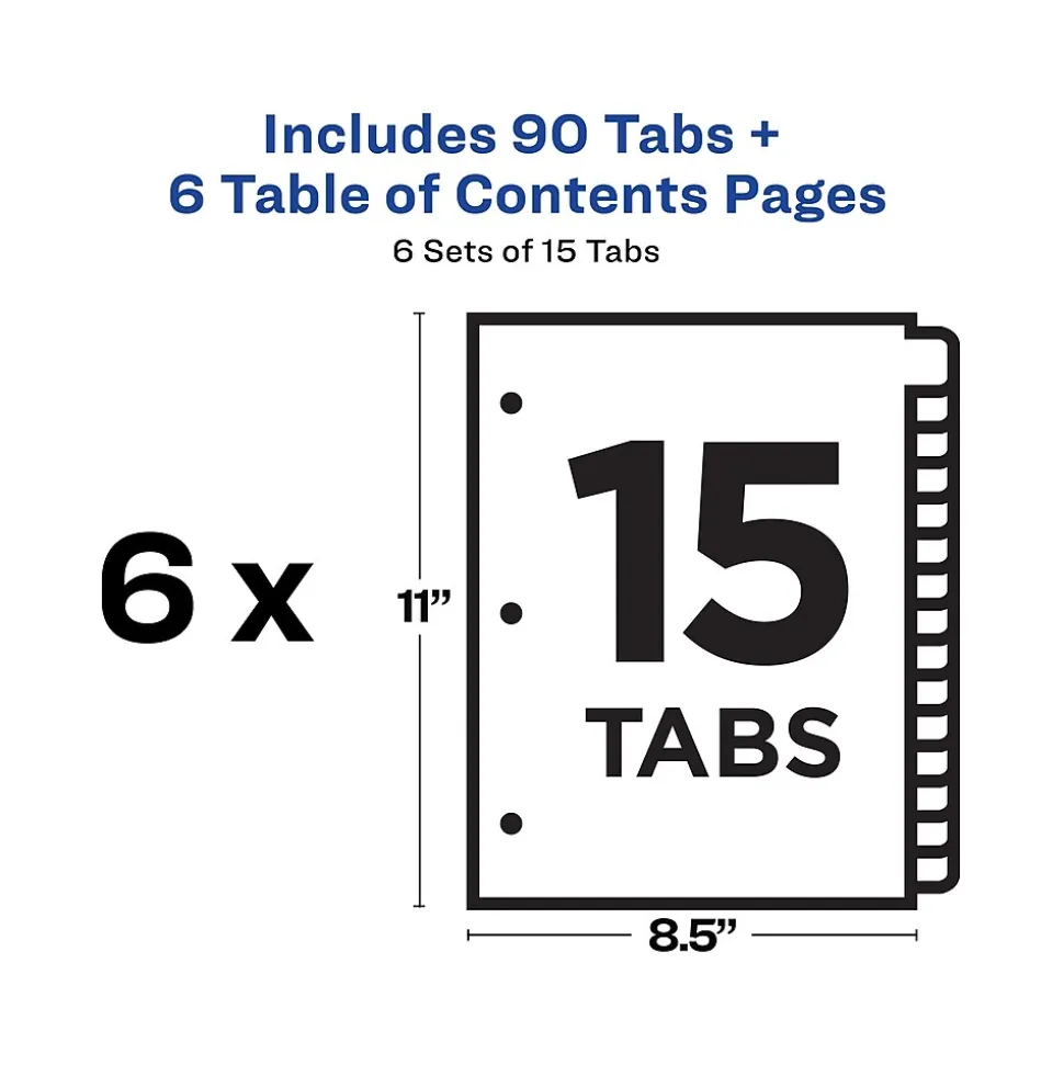 - 6 sets of 12 dividers are included with sturdy tab and hole reinforcements on both sides