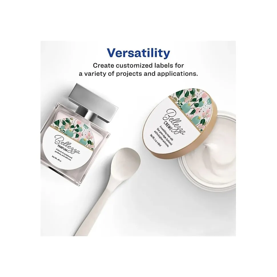 Make sure your handmade gifts and products stand out with Avery 22891 glossy white 3″ diameter round labels that offer the professional finishing touch you need. Glossy Avery labels feature a beautiful photo-quality shine that adds an elegant glimmer to mailing seals, food labels, body butter labels, candle labels and more. Create your own unique designs with hundreds of customizable Avery templates. These glossy round labels also feature exclusive Avery Sure Feed technology to improve print alignment and avoid jamming. The blue, textured strip on the top of each sheet provides better grip for printer rollers and helps feed the sheet through your printer. The patented Easy Peel label design makes these labels easy to peel and quick to apply. Just bend the label sheet, peel off your labels and fold the sheet back flat. The permanent adhesive ensures that your labels stick and stay without curling, peeling or falling off. Smudge-proof when used with inkjet and laser printers.