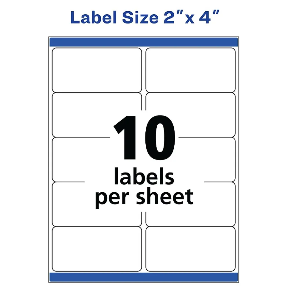 Create custom labels for gifts, crafts, party favors or parcels with this 500-box of Avery shipping labels. The TrueBlock technology covers and conceals the underlying surface so you can reuse boxes or correct mistakes, and the permanent adhesive secures labels in place. These Avery shipping labels are compatible with inkjet printers to let you add bright colors, graphics, logos or sharp, clear text to labels. These labels also feature exclusive Avery Sure Feed technology to improve print alignment and avoid jamming.