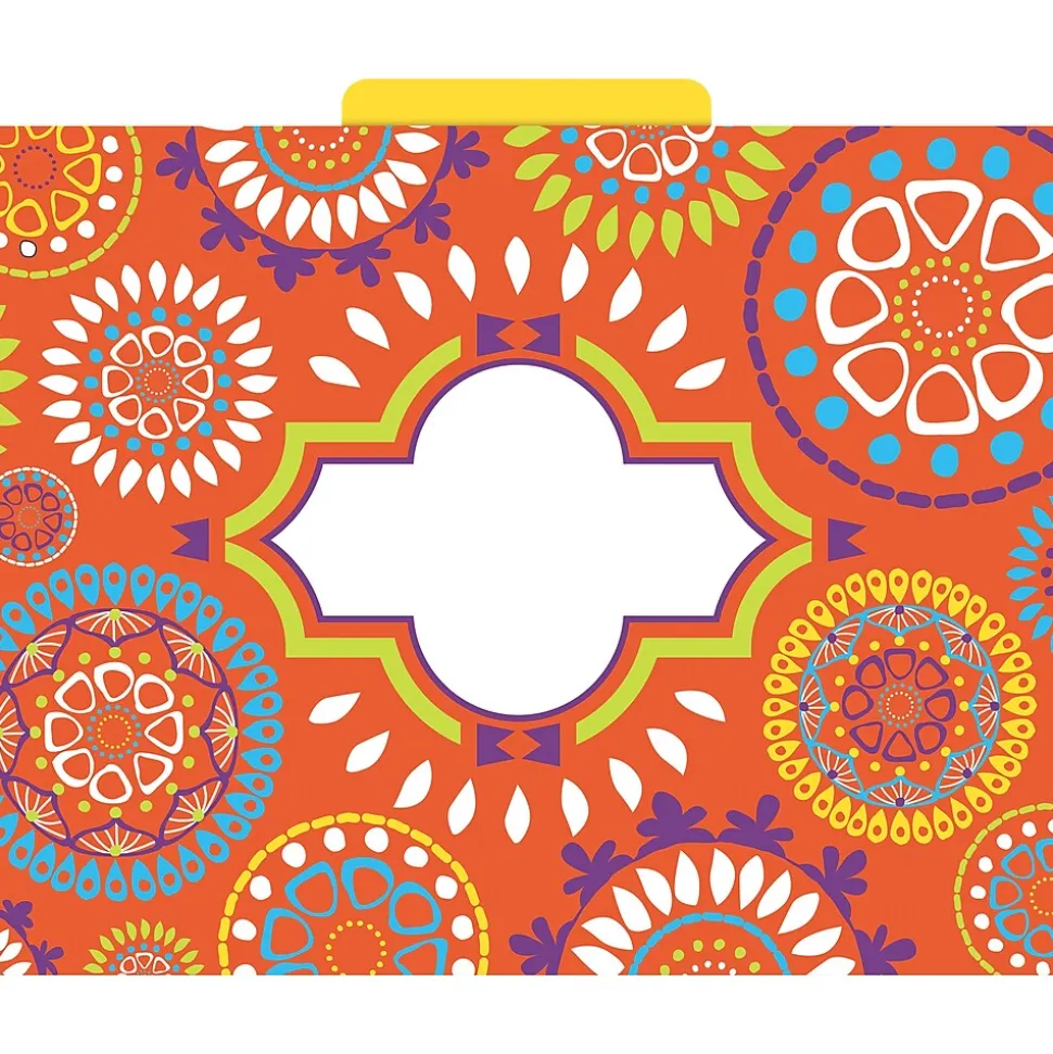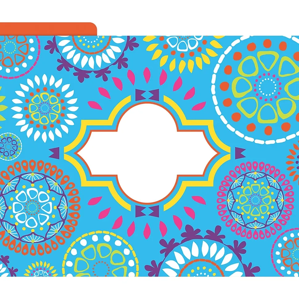 Barker Creek’s Moroccan Letter-Size File Folders are an affordable way to organize your office, classroom, or home with style and flair. This set of stylish desk accessories includes 12 file folders – three each of four colorful designs. The folders are 1/3 tabbed, which means that they have three tab positions – four folders are tabbed on the left, four folders are tabbed in the center, and four are tabbed on the right. The 14-point stock makes these folders perfect for desktop filing, meeting handouts, and student papers. These Moroccan file folders come with a preprinted “label” on the front for adding a table of contents, highlighting meeting agendas, listing the names of team members, bulleting travel itineraries, and so much more. These unique office supplies are fully reversible, each folder having a multicolored design on one side and a vibrant, solid color on the reverse side. The possibilities are limited only by your imagination! Coordinating products are available. Search: Barker Creek Moroccan.