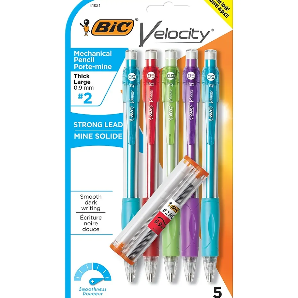 - One 5-count pack of BIC Velocity Strong Lead Mechanical Pencils With Erasers