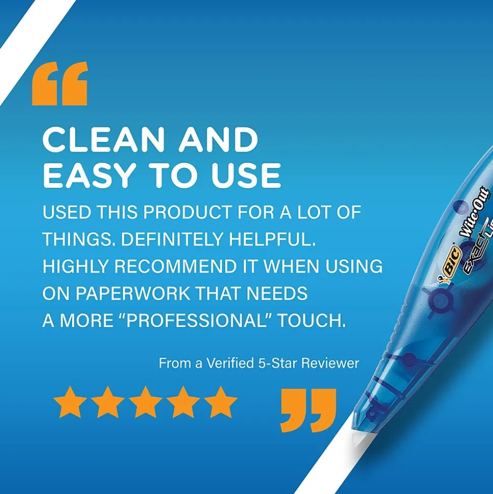 BIC Wite-Out Exact Liner Correction Tape, White, 2/Pack (50744)