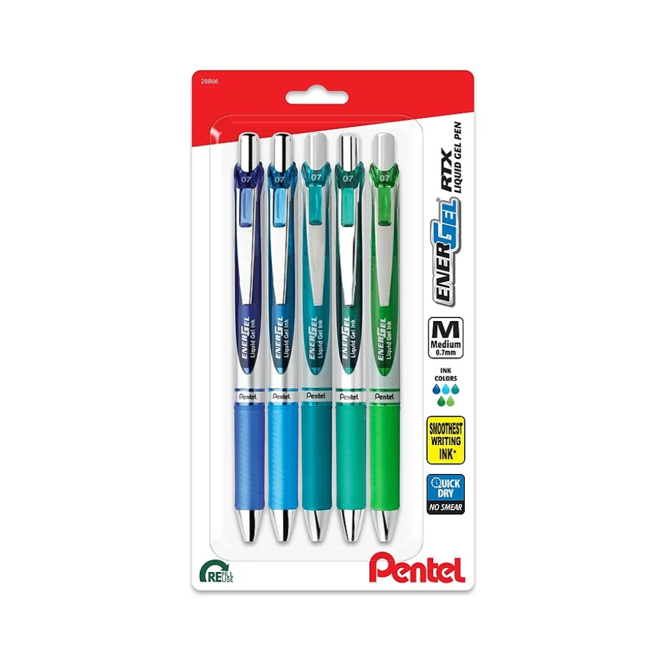The EnerGel RTX retractable gel pens provide a smooth writing experience with fast-drying liquid gel ink. Great for left-handers, these pens leave no smears, smudges, or globs. The pens feature latex-free grips for comfortable use and 0.7mm tips that write medium lines.