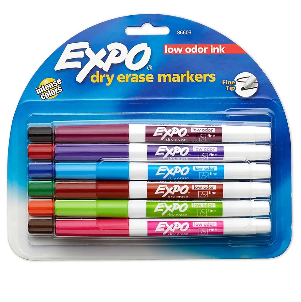 Set of 12 Color Dry-erase marker contains specially formulated low-odor, dry-erase ink. Perfect for classrooms, small offices and homes. Can be used on most whiteboards, glass, unpainted metal, glazed ceramics and nonporous surfaces. Dry-erase marker with FINE point delivers consistent color quality for bold colors and great erasability. Certified AP nontoxic and conforms to ASTM D-4236.