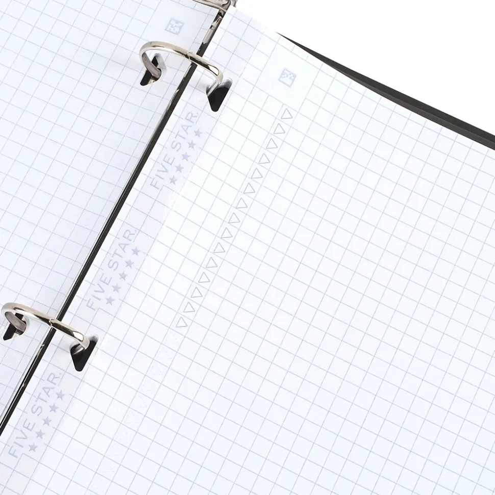 Strong enough to keep up with your busy day, this Five Star reinforced graph paper provides plenty of space for drawing, charts, and more. This paper is double the strength of the competition, with more durable triangle-shaped holes and stronger reinforcement tape to resist tearing.