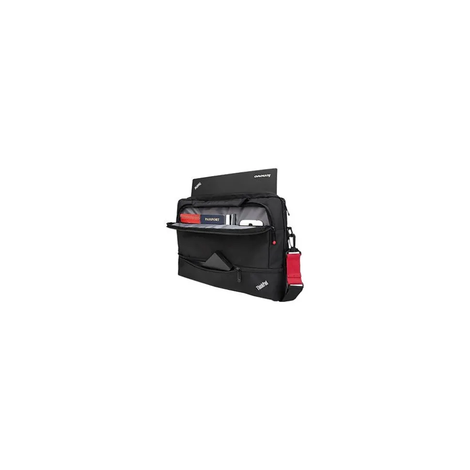 Lenovo® Essential topload case for ThinkPad offers shoulder strap, padded carry handles and trolley strap that attaches to rolling luggage for easy travel. Case measures 12.1″ x 15.6″ x 2.5″ and comes with a ergonomic shoulder strap.