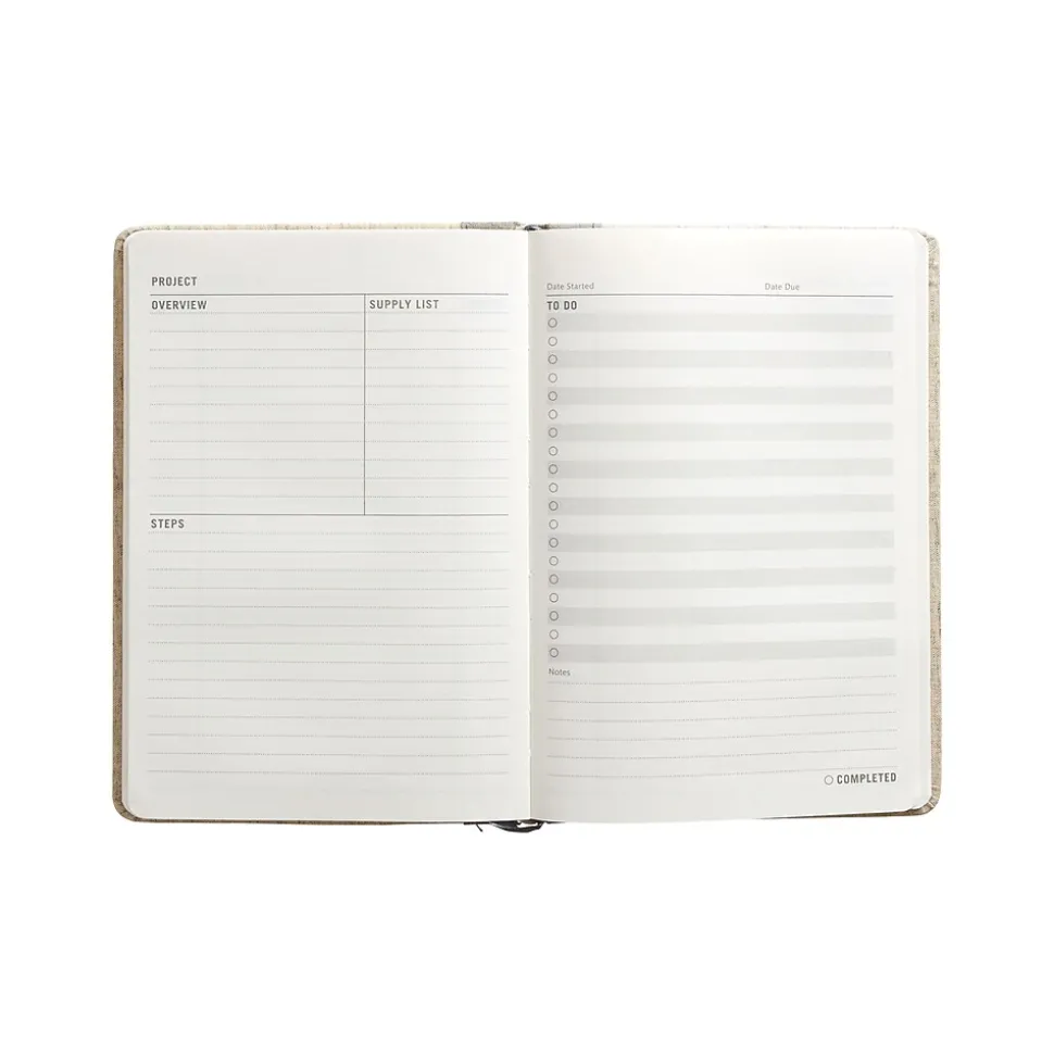 Stay organized and achieve your goals with this Martha Stewart project planner journal, featuring a stylish linen cover with a high-quality faux leather tab and acid-free pages to keep your plans and ideas beautifully preserved.
