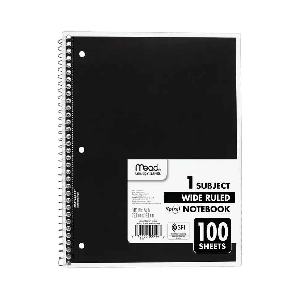 Take notes on the wide-ruled paper and keep your homework, in-class assignments, and more organized. These Mead basic one-subject notebooks are wide-ruled for easy note-taking.