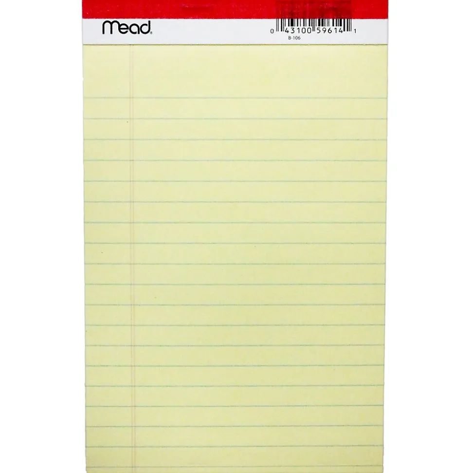 Mead® 5″ x 8″ Junior Legal Pad, Canary, is legal-ruled and features 15 lb. canary perforated paper. Each pad includes 50 sheets. Sold as a pack of 12 pads.