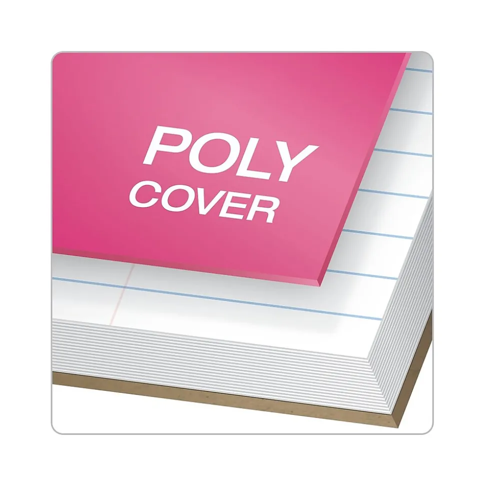 This Oxford one-subject poly notebook comes in bright colors with front pocket storage. The notebook is perforated, three-hole punched, and spiral-bound with a strong no-snag coil. Comes in assorted colors.