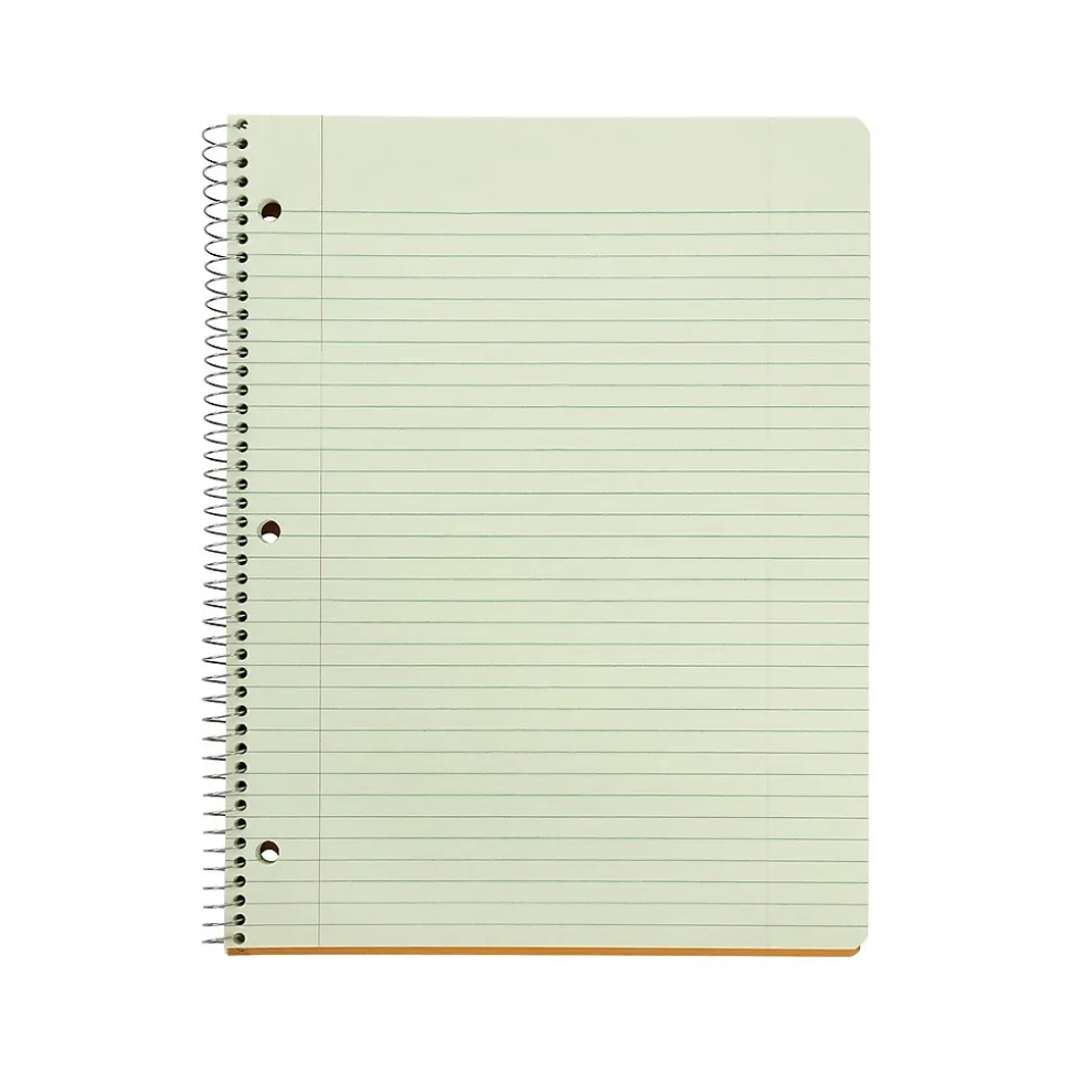 Refer to past notes easily and create new ones with this letter-size college-ruled notebook. With a wire-bound spine, this notebook can lie perfectly flat or completely fold in half, so you can write notes more comfortably and turn pages quickly. This Oxford one-subject notebook comes with 80 sheets of green-colored paper, for easy reading, while the tan rigid kraft cover provides enhanced durability.