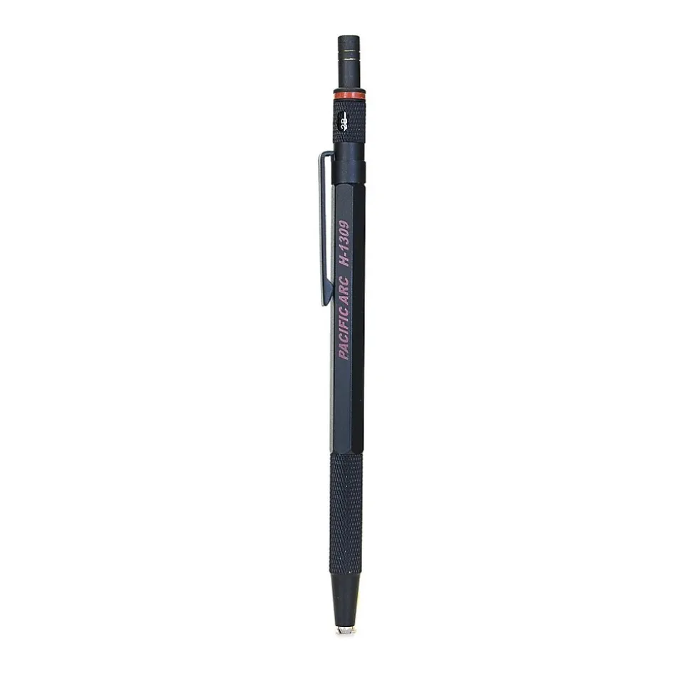 The Pacific Arc H-1309 All Metal Lead Holder has a solid and durable feel. It has a hexagonal barrel to prevent rolling, and a textured metal grip. Designed for 2 mm leads, turn the adjustable, revolving barrel to denote the current lead degree you are u using.