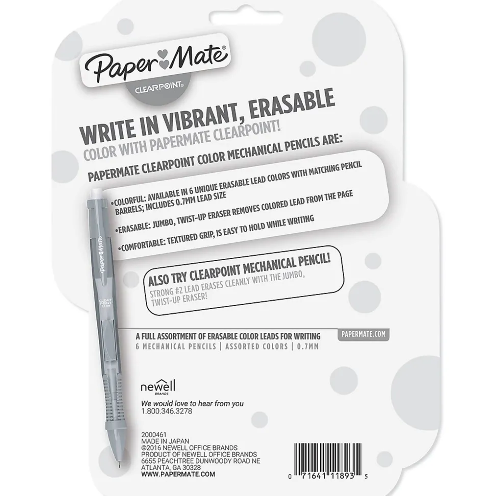 Say it in vibrant, erasable color. Add a blast of fun to your writing with Paper Mate clearpoint color lead mechanical pencils. With bright, erasable lead colors, your words will pop off the page like never before And the jumbo mechanical pencil eraser and comfortable grip mean the party never stops. Filled with colorful pencil lead, plus a jumbo eraser and comfortable grip, these mechanical pencils make it fun to write, draw, doodle and erase. Whether you are taking notes or exploring your creative side, these mechanical colored pencils mean you will always have the perfect color. Add a burst of vibrant, erasable color to all your writing, notes and creative expressions.